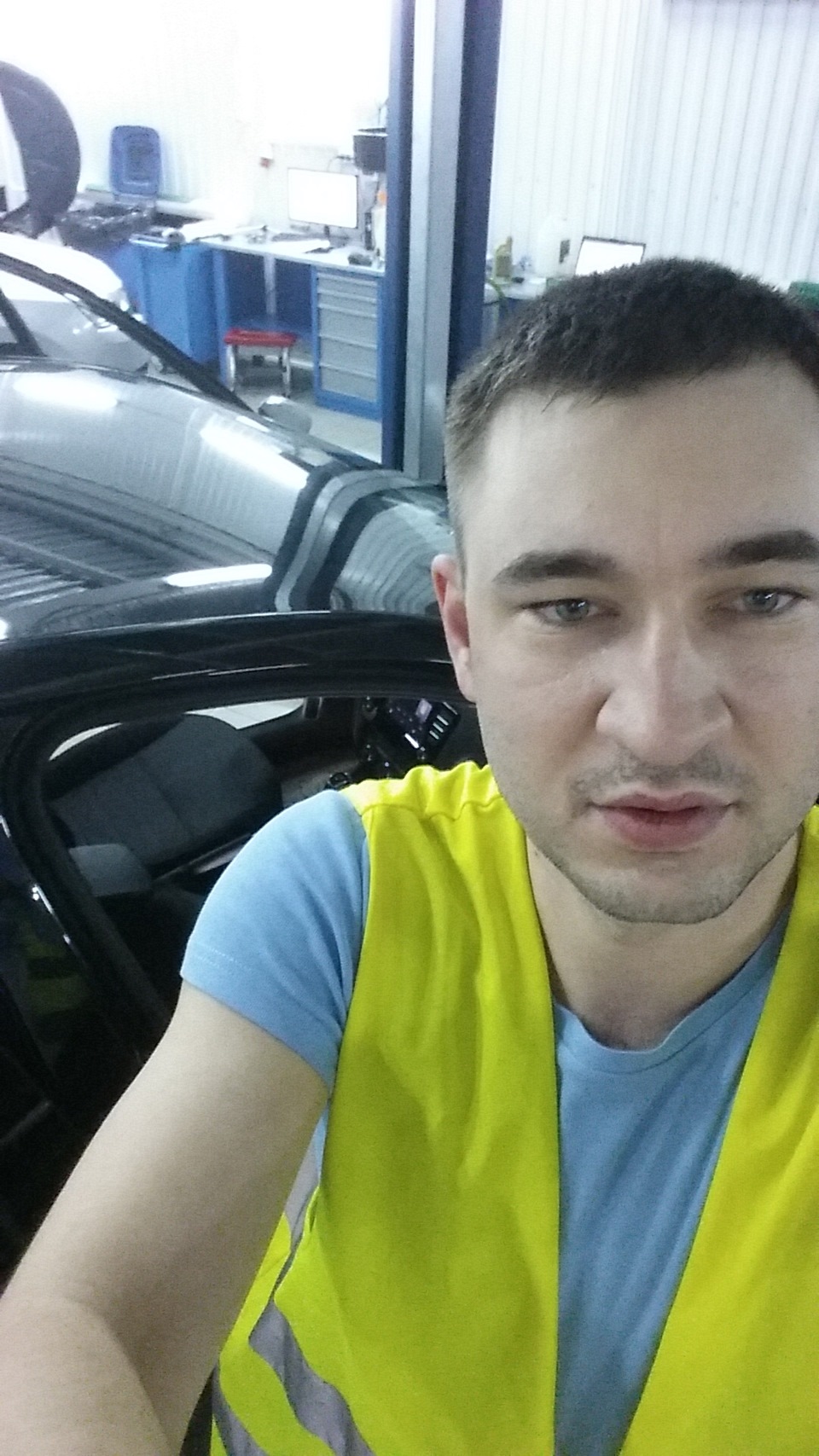 Я на фоне своей машины, на фоне сервиса ААА Моторс, на фоне откручивания сиденья )):