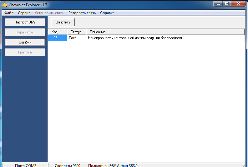 Респект. Нигде никто не указывает, на каком контакте airbag в колодке 16pin. По дурости впихнул вместо контрольной лампы светодиод. Не заработало, вернул обратно лампу накаливания и теперь надо сбросить ошибку.
