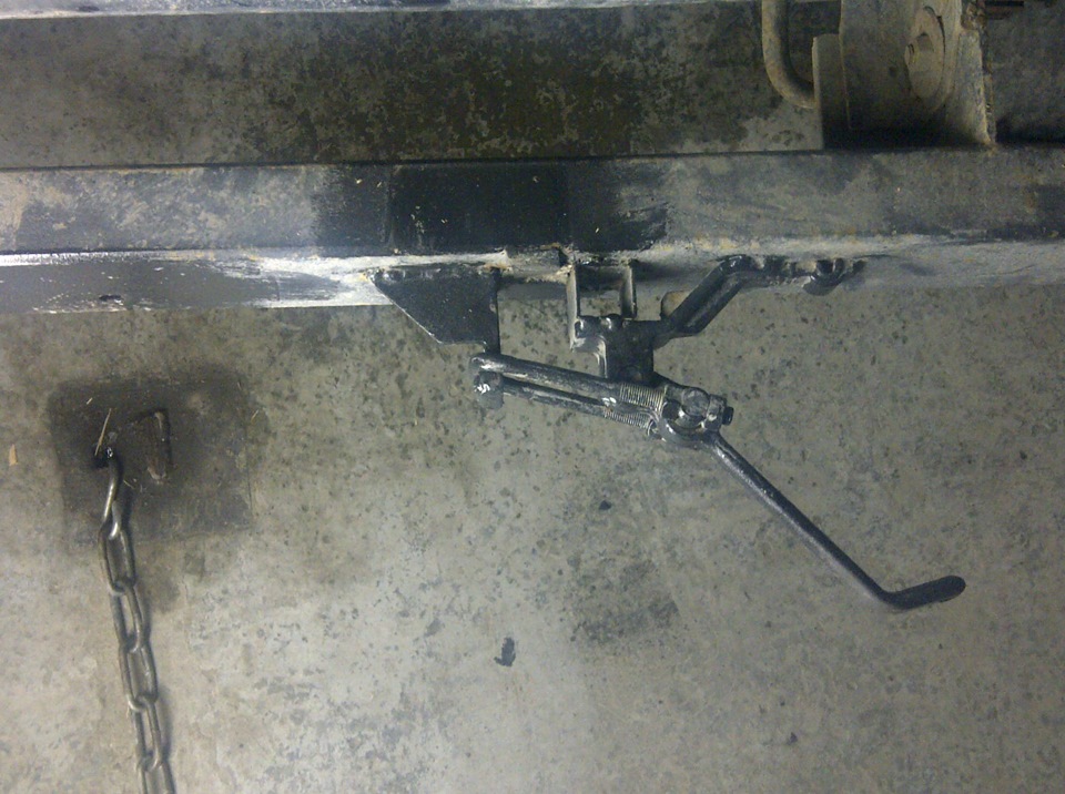 p.p.s. по просьбе — добавлю фото замка, слева вырезанная из уголка защёлка, справа сам замок борта, форма у него изогнутая, пришлось подложить кусочек профильной трубы