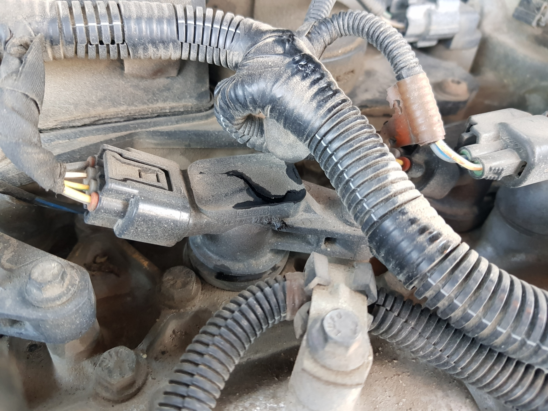 Поехал сегодня утром по делам, прогрел машину, всё было нормально. Проехав несколько км, минут через 10 высвечивается ограничение мощности двигателя, машина стала вялой, но думаю доеду до места, а там уже посмотрим. И тут остановившись на светофоре понимаю, что фрил затроил и обороты упали до 500 и чуть поскакивают вверх-вниз. Сквозь все происходящее, сразу накидываю мысли, что это может быть дроссель, катушки, форсунки и т.д. И только отьехал на обочину, пришлось частично залезть на тротуар, чтобы не перегараживать проезжую часть, тут же заглох, да ещё и запахло плавленным пластиком (главное без кипеша). Бегом под капот, скидываю пластиковую накладку, а тут она…