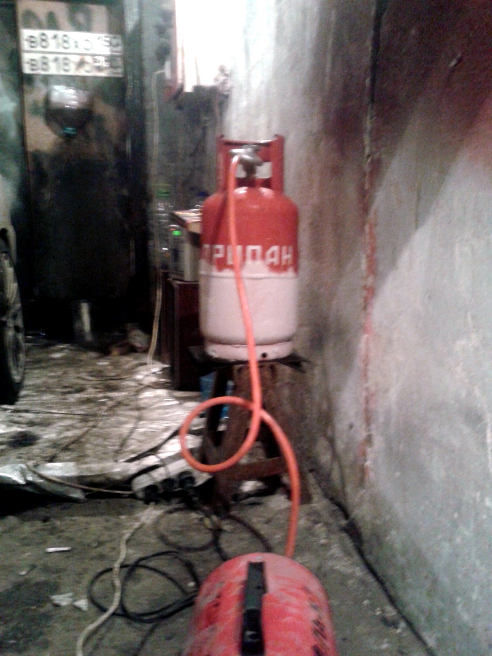 Очень удачно попалась на глаза в ТК "ЮЖНЫЕ ВОРОТА" пушка 10 кВт ценой всего — 3 500 р с редуктором, фитингами и шлангами в комплекте. Баллон под газ — объёмом 12 литров — 1 200 р. и заправка — 160 р.