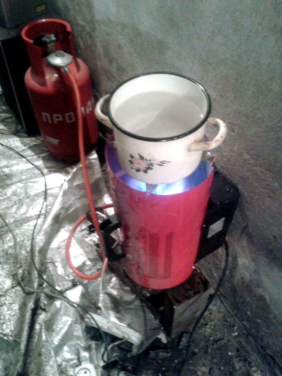 Конечно же понятно что сей девайс при своей стоимости и габаритах не протопит большое помещение, зато на мой гараж хватает как раз. Шпарит по серьёзному — для опытов даже ставили кастрюлю с водой и замеряли время до закипания)))