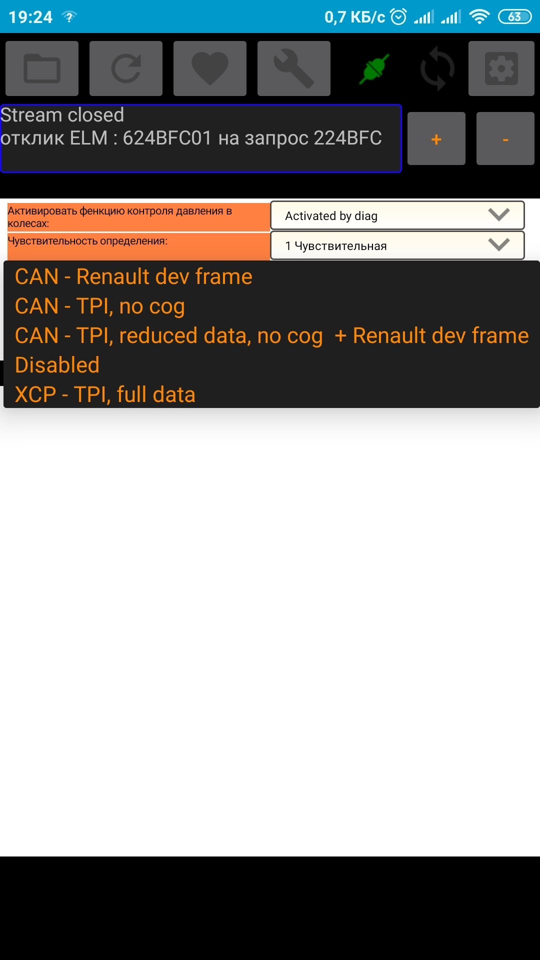 Всем привет. Полазил на просторах нашего сообщества и увидел одну замечательную фишку. Система контроля давления в шинах. Да и общался с людьми и некоторые просили расписать как это все делается с телефона. Сразу скажу у меня elm 327 v1.5 wifi. И таймауты я не выставлял все прошло на ура. И так начнём скачиваем программу yadi.sk/d/k5pSD7Q3dAMt5g. Дальше качаем архив cloud.mail.ru/public/579Z/5KZJLv6YQ после этого архив кидаем в корень устройства в память. Не флешку а саму память. Я сделал так далее вставляем обд и включаем программу.