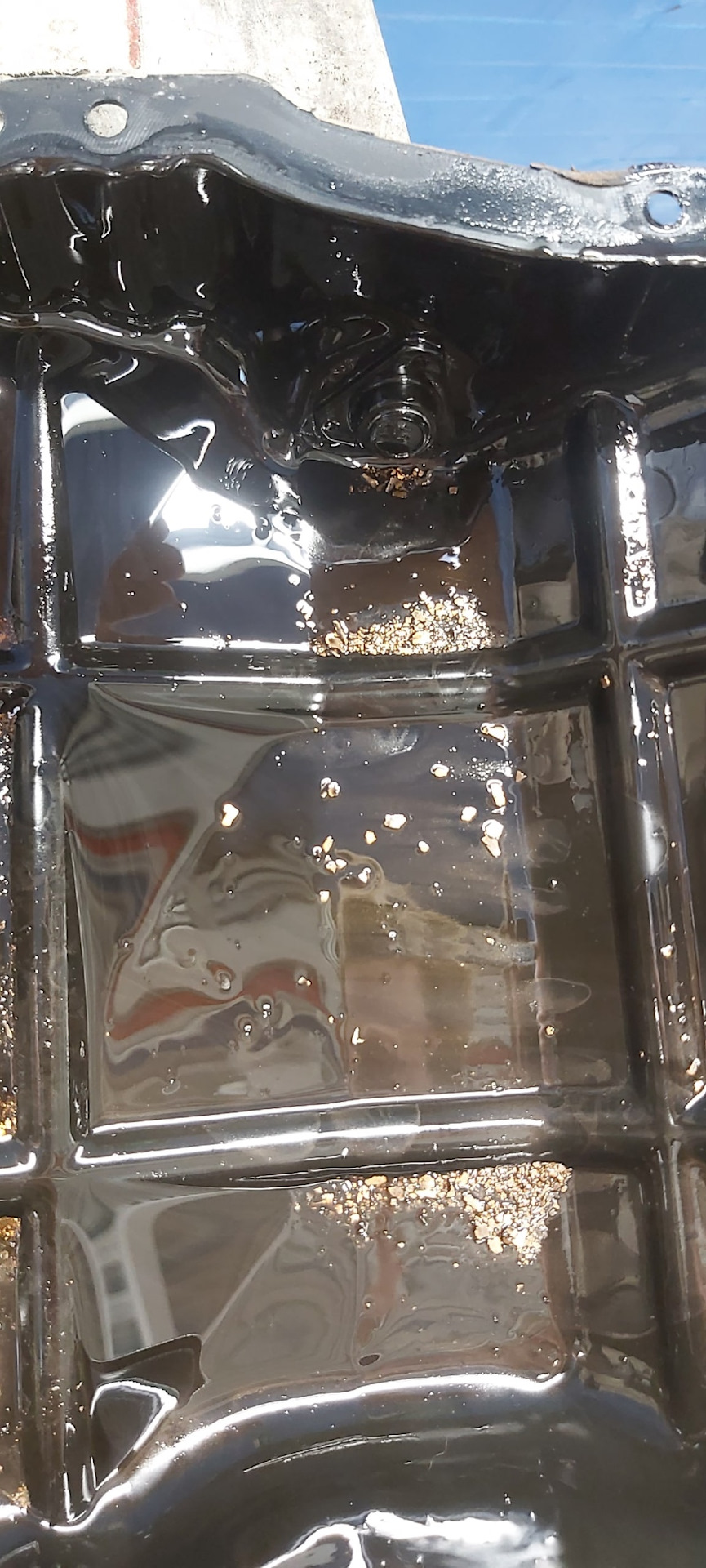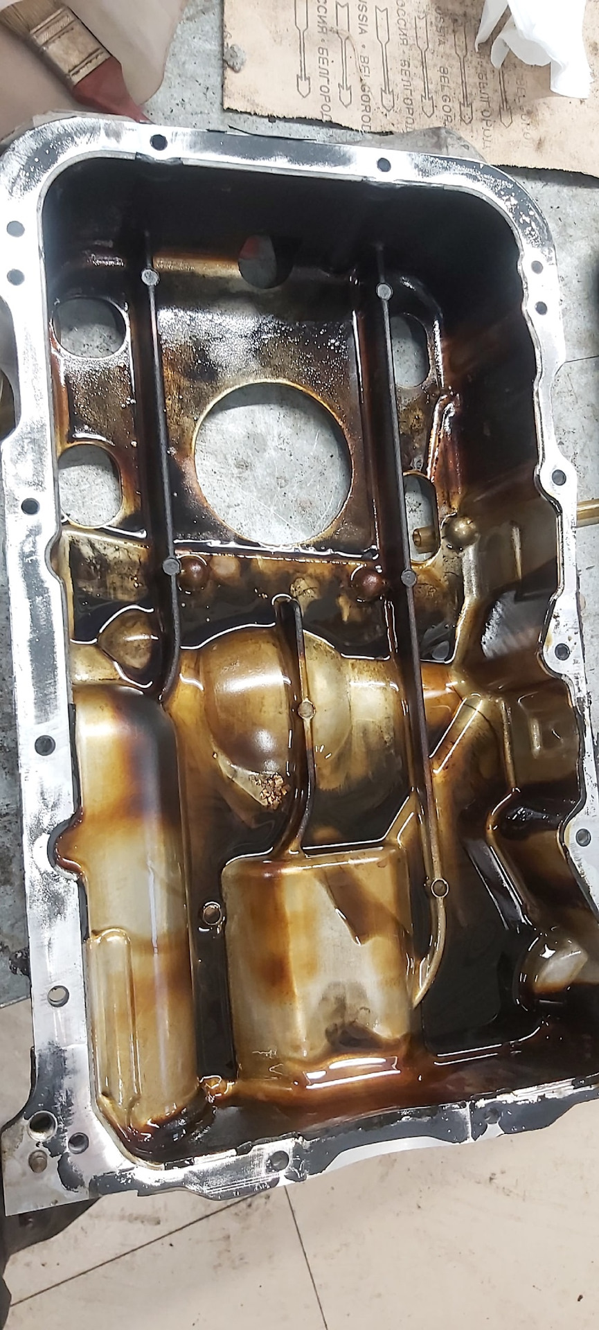 2. Сняли поддон картера и в нем увидели металлическую стружку