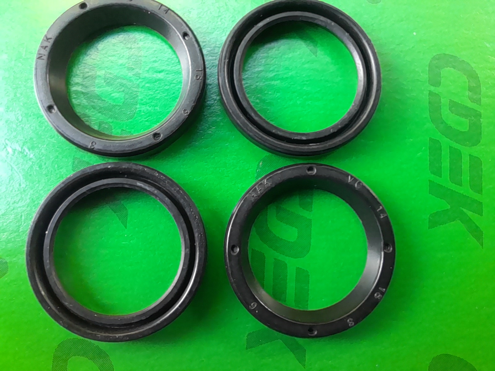 заказал в инет магазине сальники которые как будто специально для этого сделаны и идеально подходят только в передней крышке блокировки надо укоротить втулку штока на 3-4 мм, делается просто, газовой горелкой греем место до шипения слюны и легко выпресовываем эту втулку потом после доработки так же назад ставим.