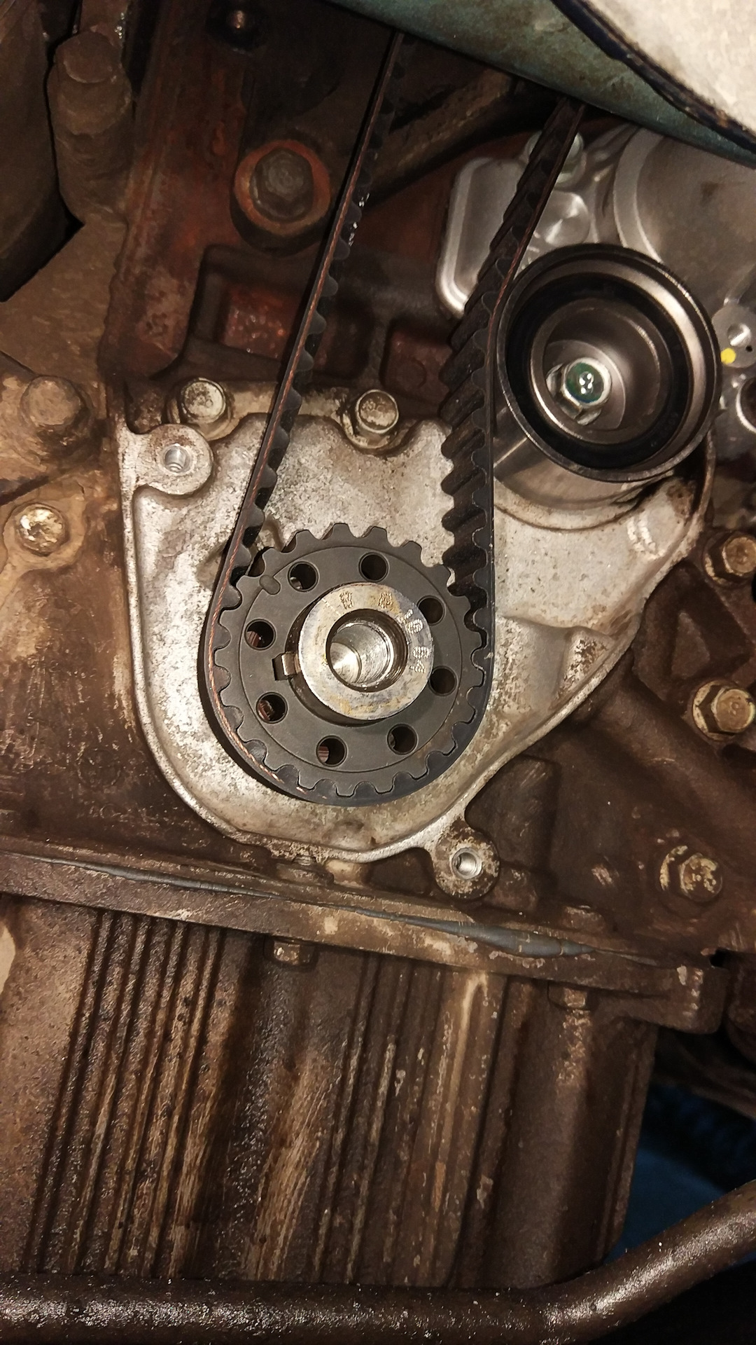 Пришлось контролировать данный процесс. Естественно, без косяка не обошлось – слесарь не знал, как правильно возводить натяжной ролик на этом двигателе. Поэтому пришлось лезть самому и смотреть, что там он сделал, картинка была такая:
