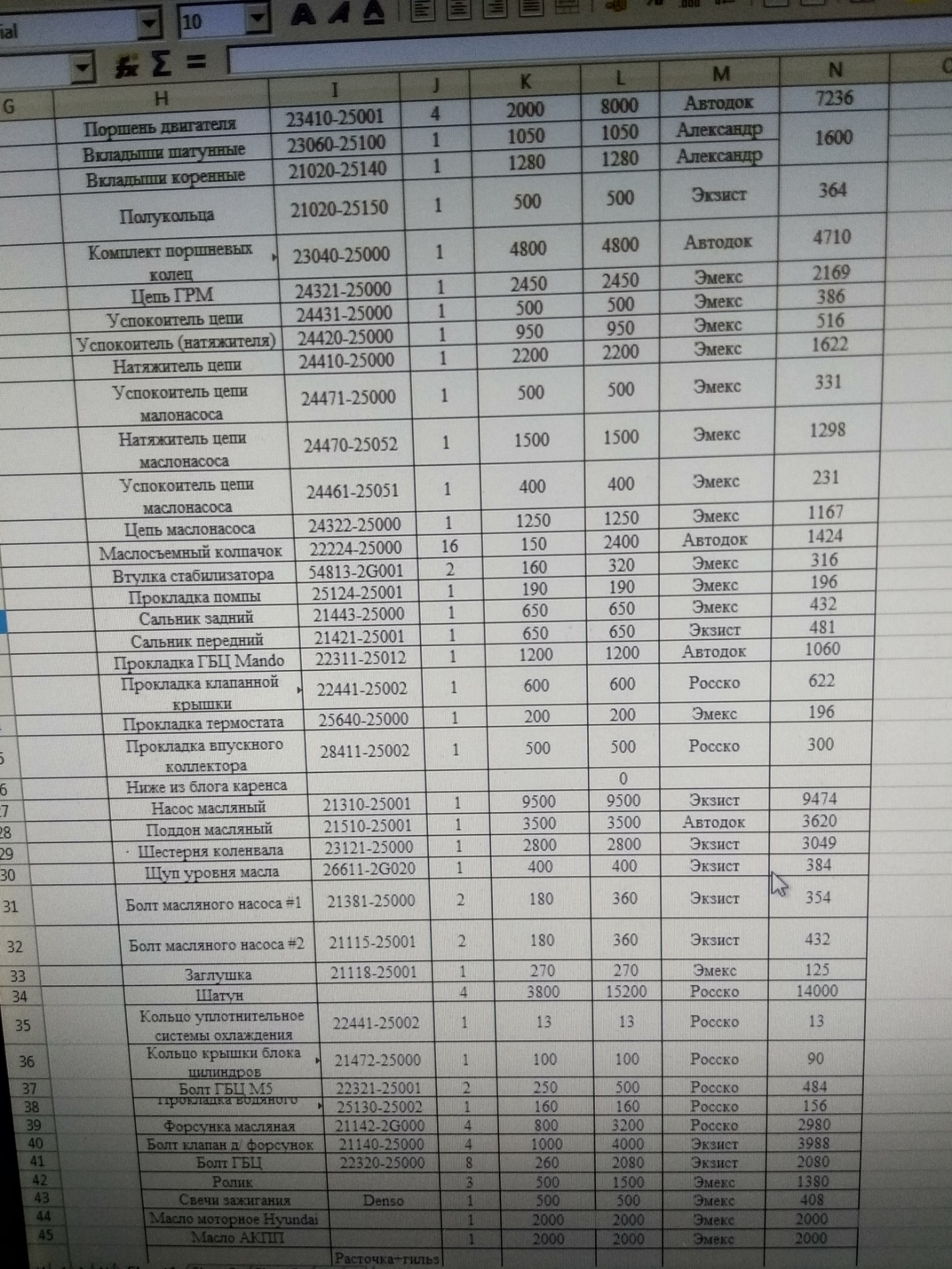 По запчастям список выкладывал раньше и ввкладываю сейчас.