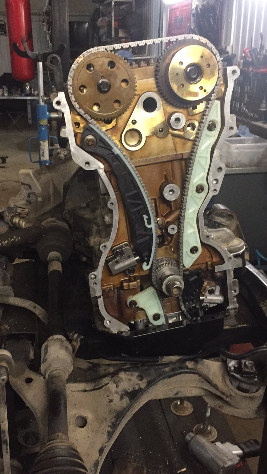 Выкинули блок балансирных валов и вместо него был установлен масляный насос от спортейджа и поддон другой формы и поменьше объемом. Цепи, башмаки, натяжители, установили все новое.