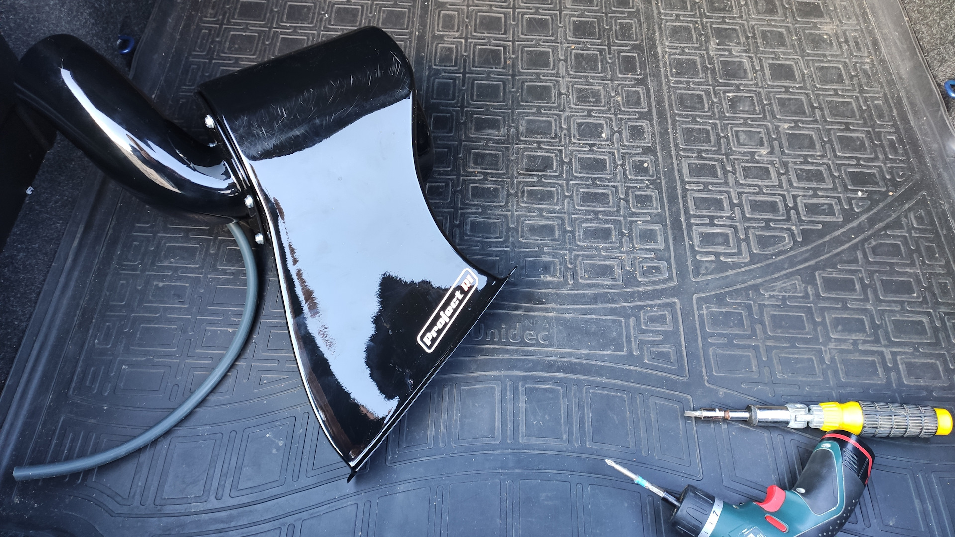 Копия карбонио ставится еще легче. С одной стороны, дальней от фары, заводим ухо крепления за скобу. С другой прикручиваем винтом. Штатный шланг охлаждения можно пропустить под корпусом впуска.