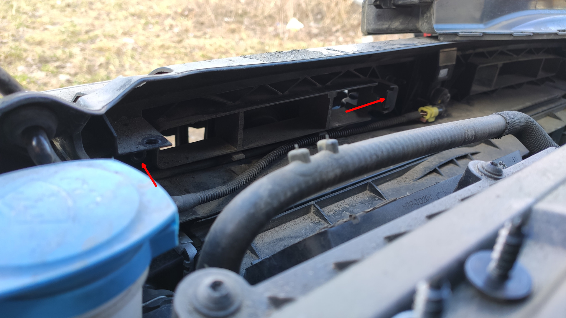 Вынимаем шланг охлаждения и откручиваем два винта T20 по бокам, отщелкиваем крепление посередине и снимаем крышку.