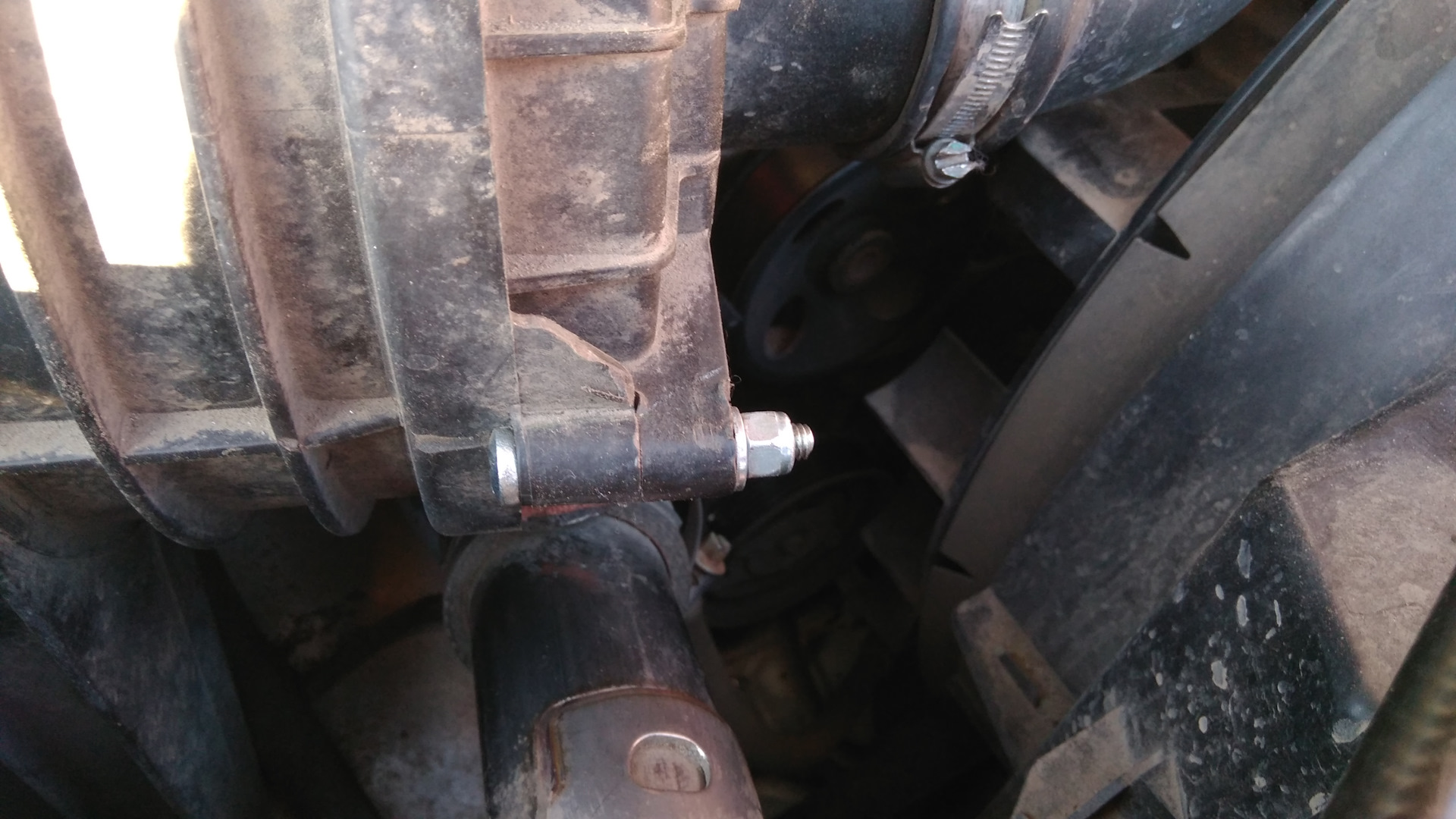 Кое-как рожковым на 13 открутил этот болт, предварительно открутив расширительный бачок от кронштейна торцевой головкой на 10. Очень не хотел собирать обратно при таком неудобном расположении. Поэтому, решил немного помучиться еще, но сделать по-человечески. Открутил полностью кронштейн расширительного бачка ключом на 10 и болгаркой отпилил уголок, который закрывал сверху болт крепления воздушного фильтра. Теперь, если что, добраться до него будет пара пустяков.