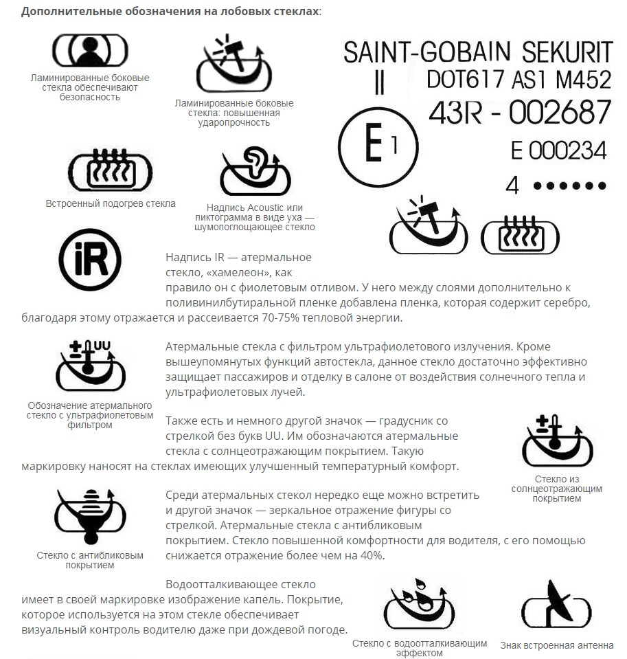 Зеленая полоса вверху, щелкография по периметру, обогрев щеток, полный обогрев стекла, датчик дождя, крепление под зеркало. Производитель PILKINGTON.