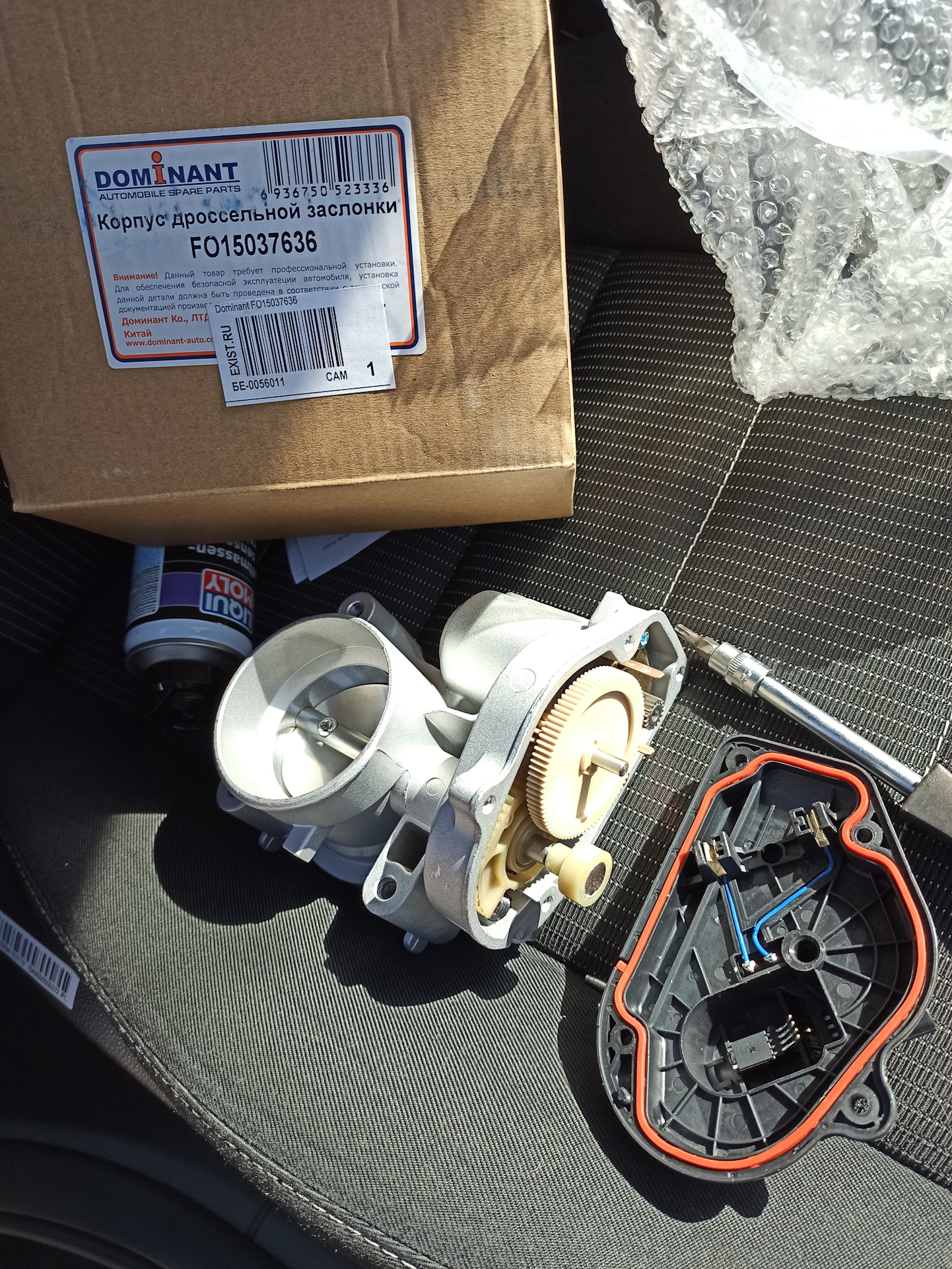 9 .Заказал новый дроссель в сборе. Рискнул на Dominant FO15037636. Вообще хотел заказать со знаменитого китайского сайта. Там уже дпдз имеет бесконтактный датчик положения дросселя! Но ждать не хотел и заказал у нас. Дроссель пришёл, очень был рад когда мои шаловливые ручонки все таки разобрали новый дроссель и я увидел следующее. В Dominant FO15037636 стоит тоже бесконтактный датчик положения дросселя! Отлично! На мой взгляд это более долговечное решение нежели плата с дорожками. Поставил, сначала снял клему АКБ. После установки, одел клему. Ключ в зажигание, поворачиваем но не заводим. Ждём 40 секунд. И так 3 раза на 4 заводим. Такая адаптация дз. Завел. Ооочень стабильная работа ДВС, на прогретом движке в положении P на холостых мгновенный расход 0,9 л/ч. До этого 1,2. Далее переключения стоя, без ударов и толчков вообще! Тронулся еду, первая, мягко, вторая идеально!