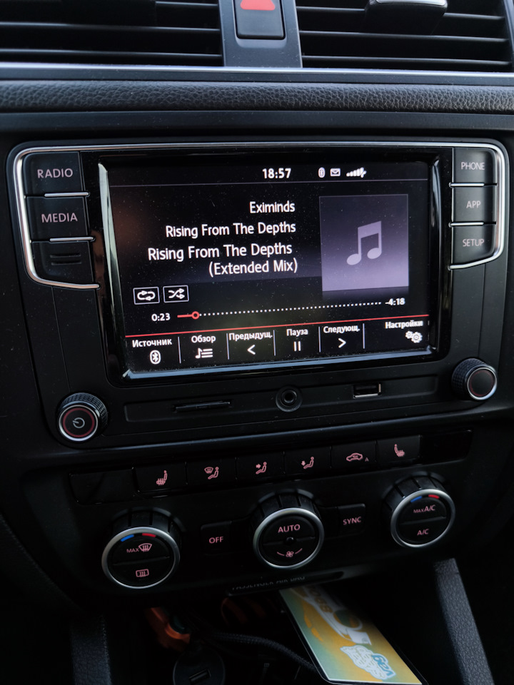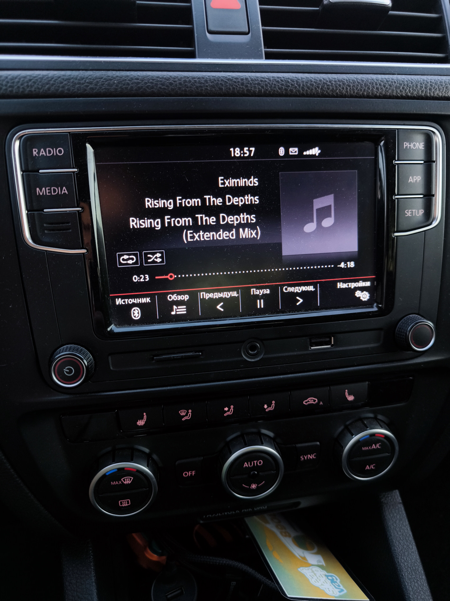 Как она играет, просто сказка, четкий, насыщенный звук, мягкий глубокий бас. Да и в интерьер вписался, так как и должно быть. Ах да, кайфую с показаний климата на магнитоле. Ибо немцы сделали климат не очень удобно и не видно, что стоит hi или 26. Еще я понял, что в VW отличная стоковая акустика. В том же сиде просто плоское звучание. Теперь осталось найти задние оригинальные низкочастотники и пищалки, а потом все это подключить. В идеале надо делать шумку дверей, сверчки все-таки есть. Что хочу сказать, отличная магнитола, играет великолепно. Карты памяти читает быстро, диски только CD-R, а вот CD-RW не читает.
