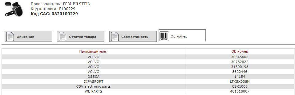 Далее не хитрыми манипуляциями вышел на сравнительную таблицу ниже и заказал датчик Febi у дилера: