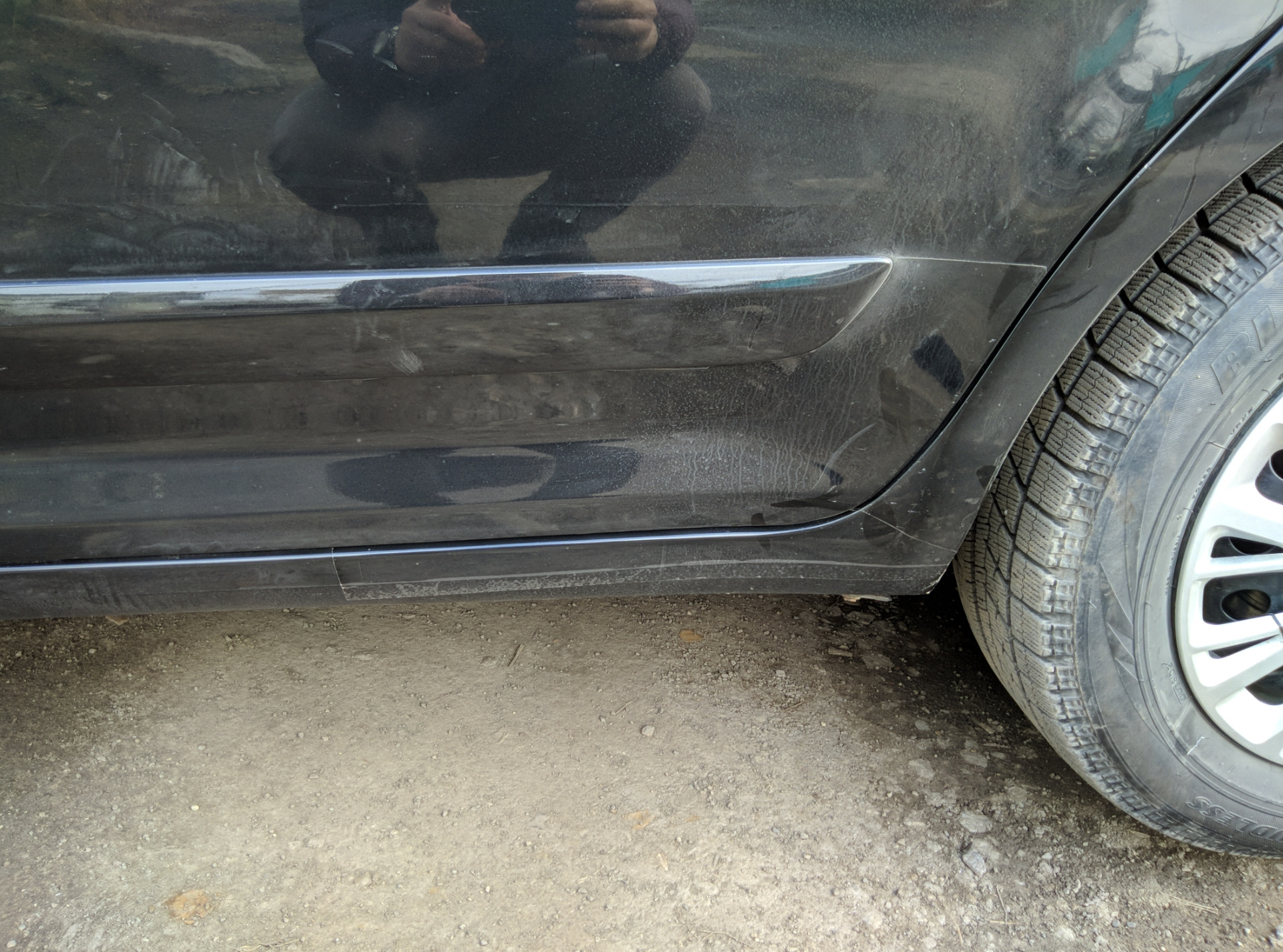 Заднюю дверь от низа и до молдинга полностью заклеил в броню, порог от середины двери и на крыло.