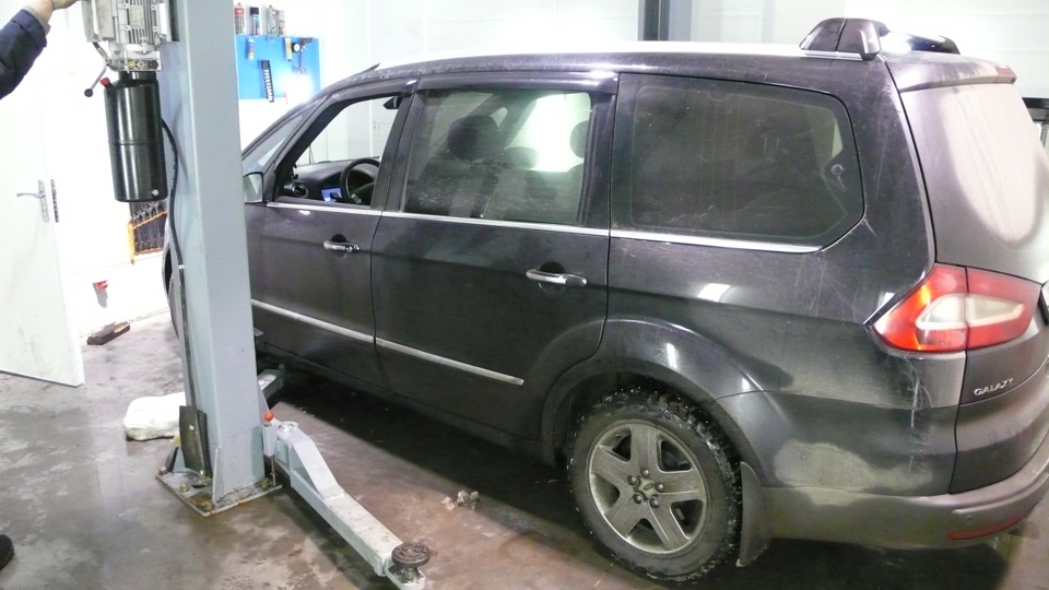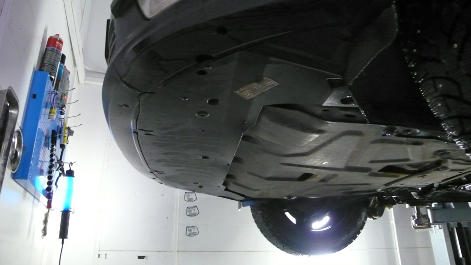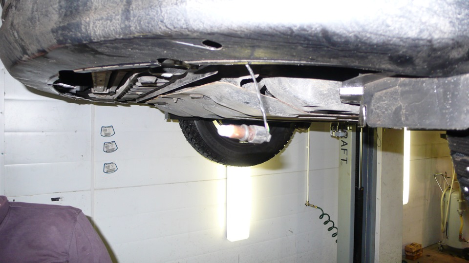Поскольку для замены ламп необходимо снимать нижний пластиковый кожух-пыльник, было принято решение сделать это на подъемнике. Сказано — сделано.
