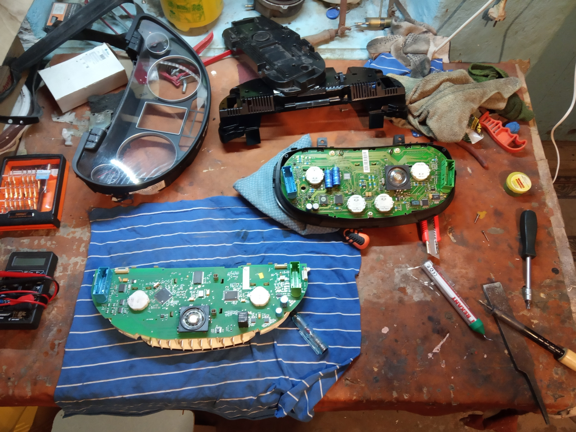 Было не много свободного времени, решил устранить оду неисправность. А именно зуммер приборки. Так как пару раз по запарке оставлял включенный свет на весь день, а потом прикуривал. Снял, разобрал приборку, прозванил динамик, он в обрыве. Ну не проблема. На донор была взята приборка от гольф4, у меня их несколько было. Динамики один в один. Все благополучно было заменено и все заработало. И после часа эксплуатации я пожалел о проделанном. 😄 Так как достала индикация не пристегнутого ремня. А теперь вопрос номер один, кто знает кодировки на отключение индикации? И вопрос номер два, где найти европейскую шкалу? Мили чё то не втыкают.