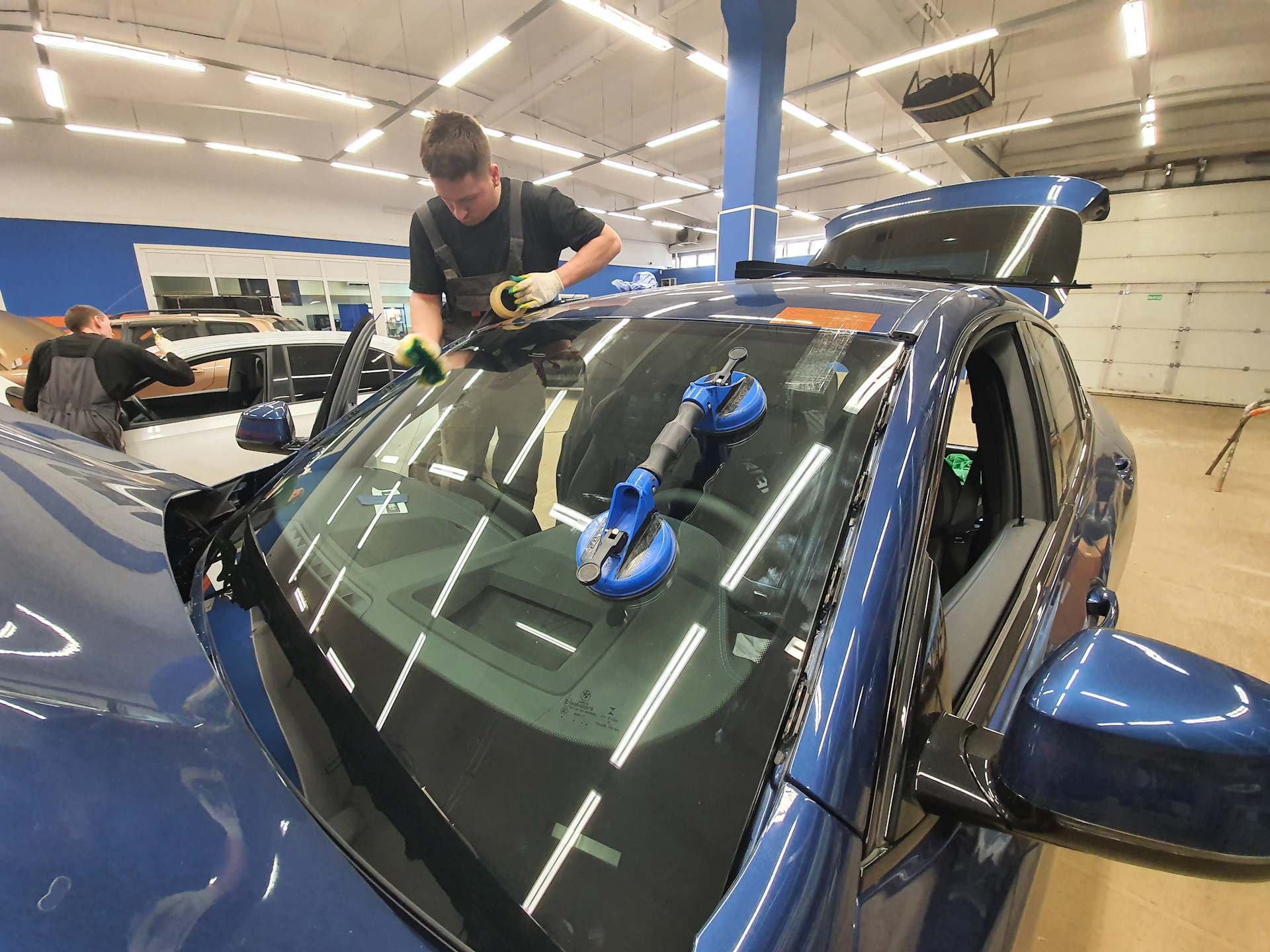 После этого нужно спокойно доехать до парковки и оставить автомобиль до утра на ровной площадке, чтобы стекло правильно приклеилось.