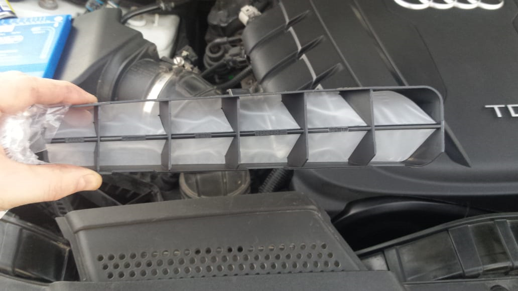 Также решил проверить состояние сетки перед воздушным фильтров на воздухозаборнике, но его там просто не оказалось (скорее всего выкинули чтобы не заморачиваться с его обслуживанием), приобрел новый и поставил. В ходе установки дополнительного фильтра салона выявлена поломка крышки над клеммой от АКБ, которая установлена на так называемой ЖАБО(она тупо валялась под крышкой), заказал, купил, поставил.