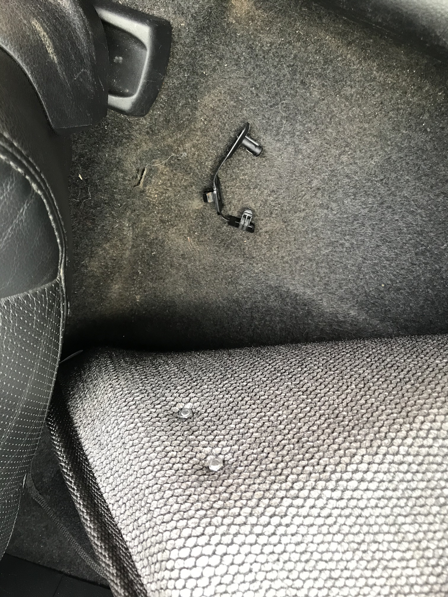 1. Нет отверстий, ямок под фиксацию за крепежные элементы перед водительским и креслом переднего пассажира (странно). Пришлось вынимать крепежи, чтобы коврики легли плотнее.