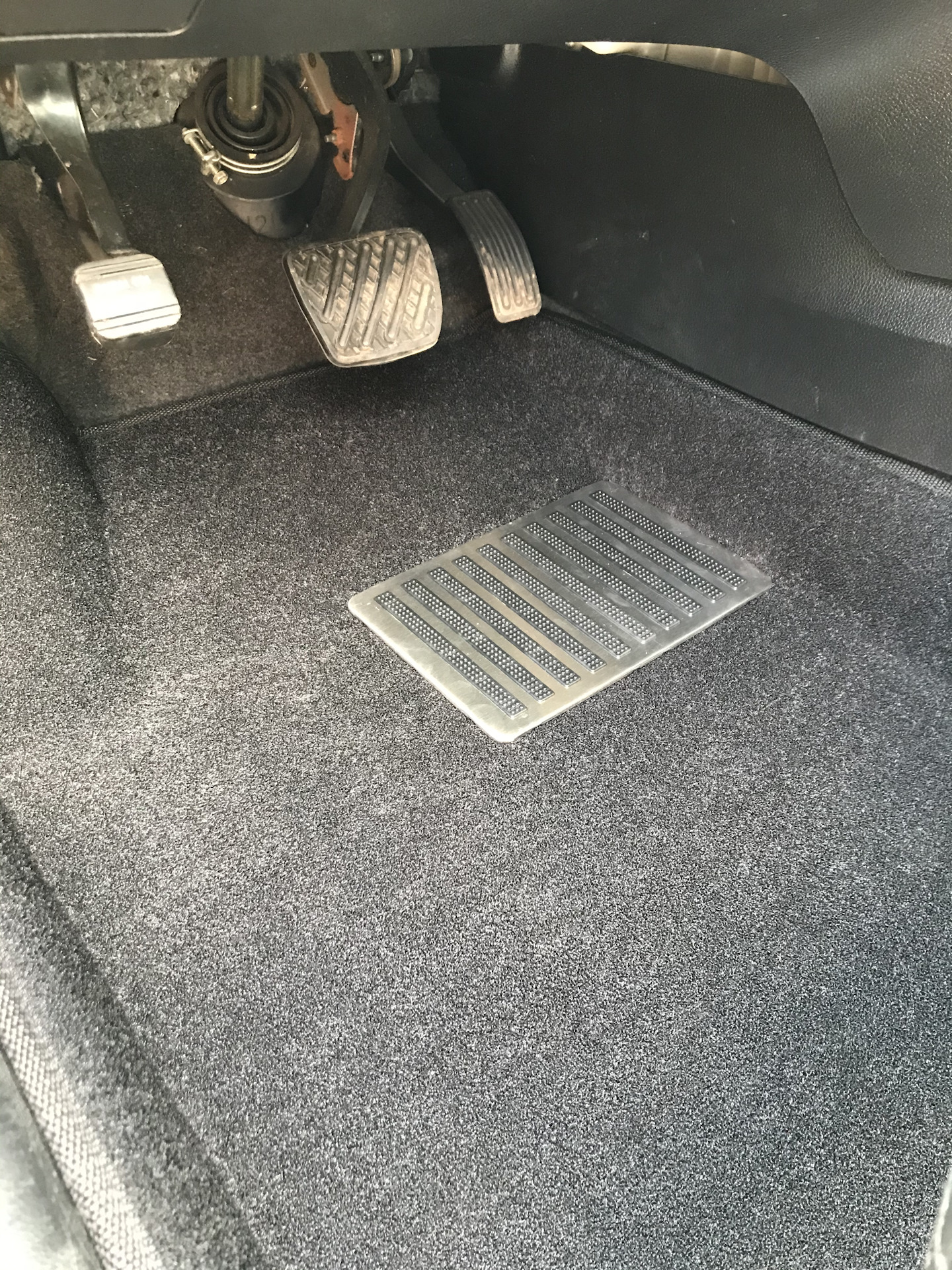 Испугался. Проверил педаль газа. Максимально сдвинув ковёр назад, попробовал до конца выжать педаль газа… она ложится поверх ковра. До кромки сантиметра 3. В нормальном положении можно не переживать + если коврик и отъедет, то вперёд + не загибается. Как лёг по изгибам, так и сидит.