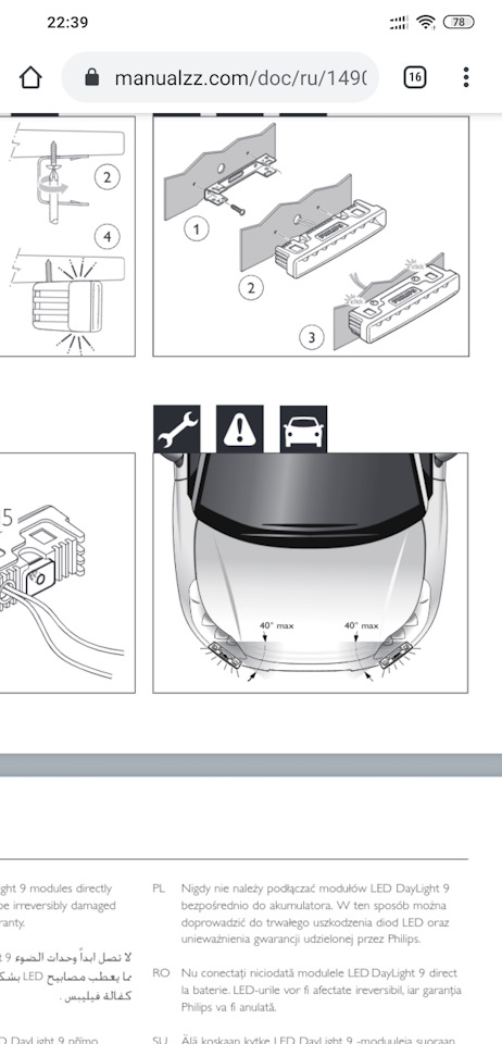 Угол установки по инструкции