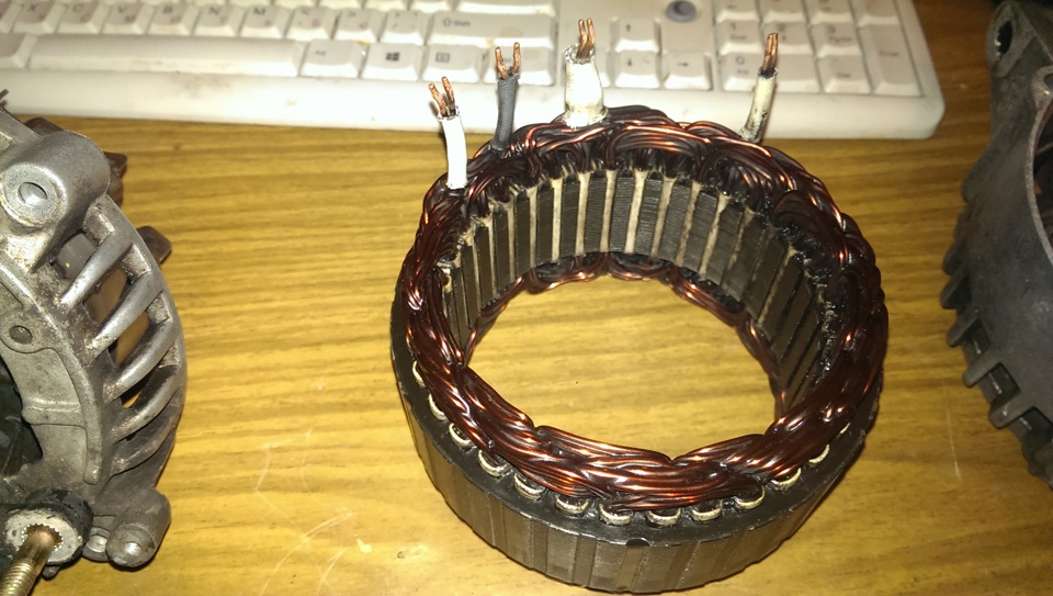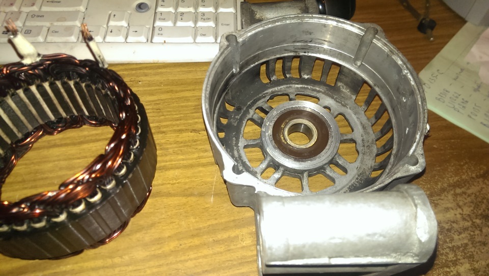 Статор смотрим что б не было затиров от ротора и обгорелостей и еще при съеме делайте это аккуратно дабы не повредить лаковое покрытие проводов а то потом как я будете заливать лаком там где поцарапали.