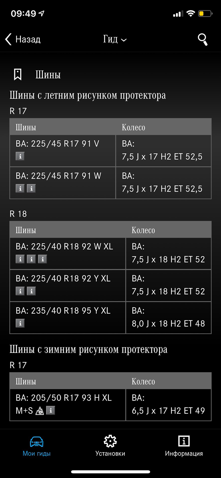 я смотрю свой 4матик, но и у тебя расхождений особо нет ет52 это для 7.5, а последний вариант вообще разноширокий