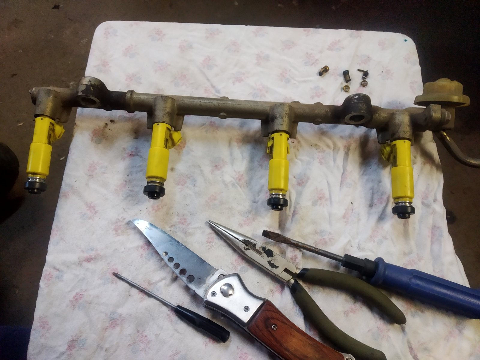 У сеточек медная оправка, она очень плотно сидит в теле форсунки. Задача трудоёмкая, но решаемая. После демонтажа первой сеточки снаровки и понимания процесса стало больше и дело пошло быстрее. Использование самореза тоже имеет место, как способ рационального решения.
