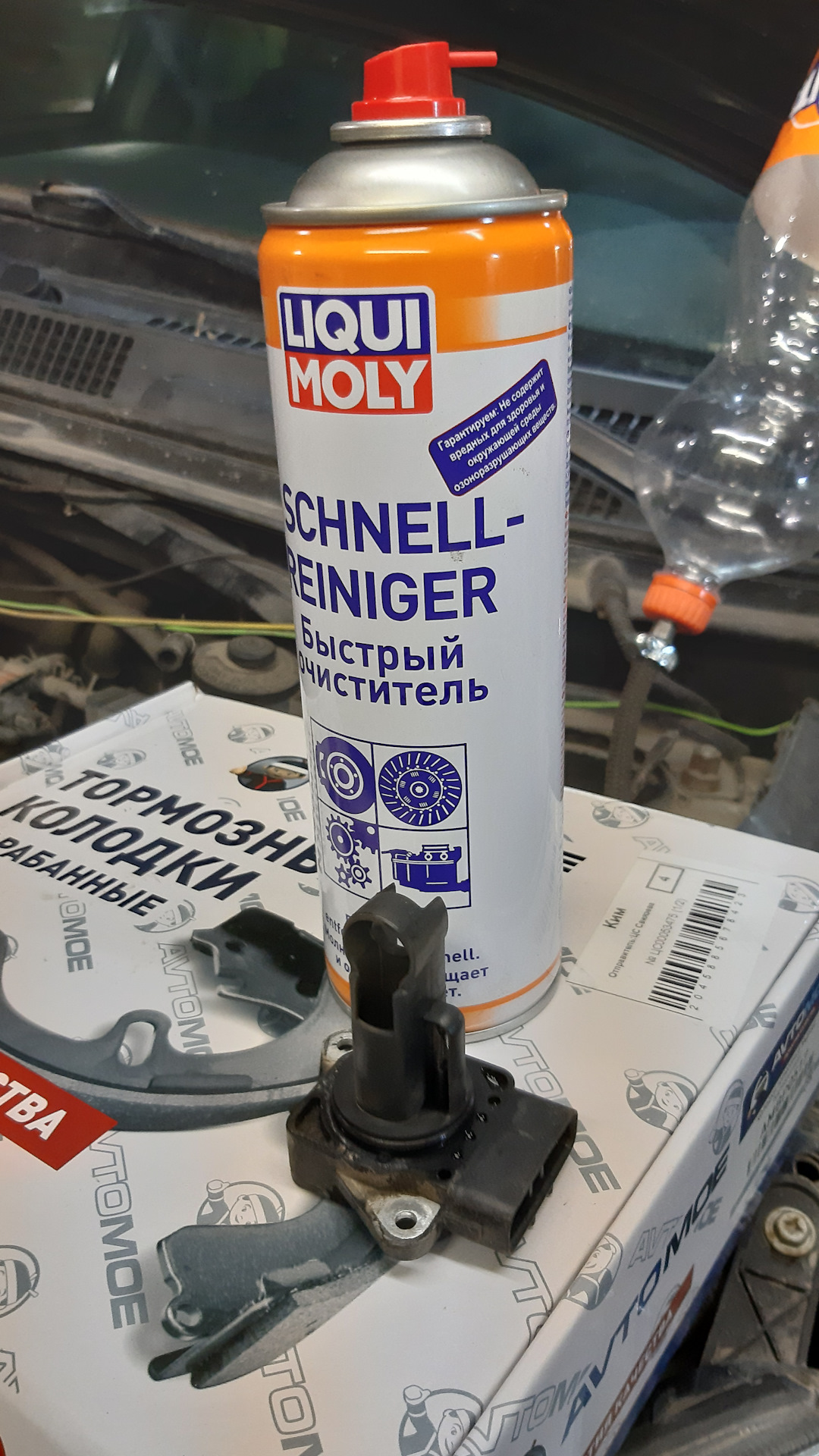 Дополнительно при снятии корпуса воздушного фильтра был снят ДМРВ и промыт специальным аэрозолем для чистки ДМРВ LIQUI MOLY. Фото и видео Вашему вниманию.
