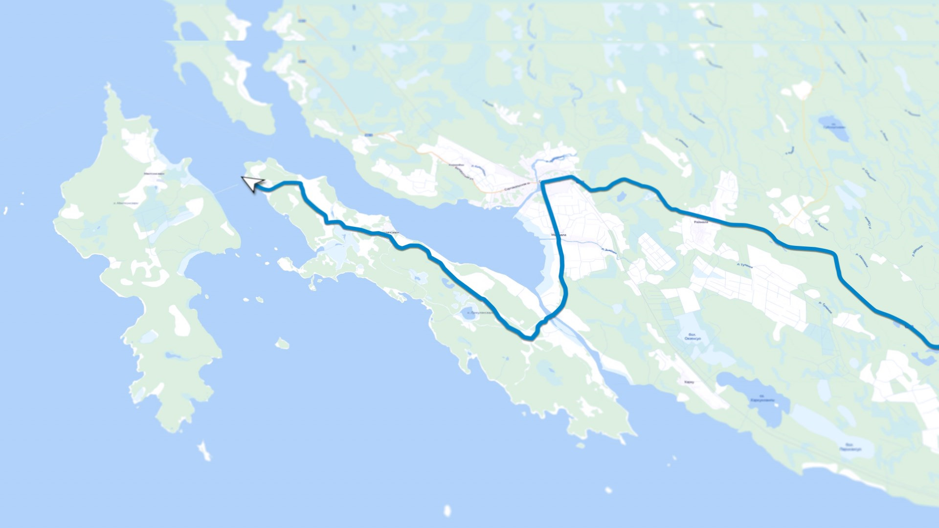 В первой половине дня, нашем вниманием завладел остров Лункулансаари, вокруг которого навигатор показывал грунтовую дорогу до Мантсинсаарского пролива.