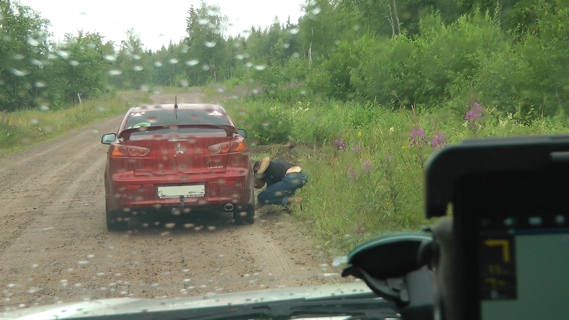 Через пару километров у Лансера спустило заднее колесо.