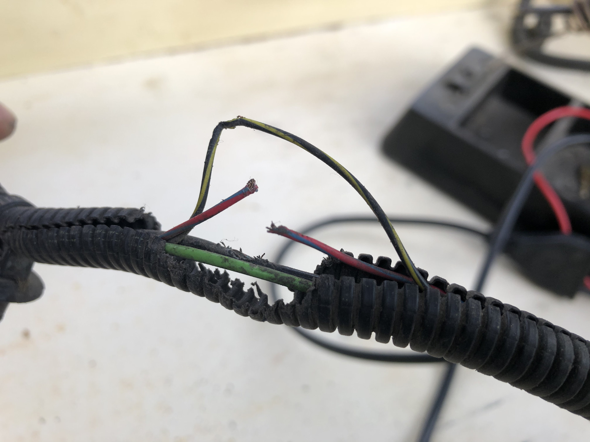 Кусок провода напрочь отсутствует…Хорошо поворотники не перегрызла до конца. Грелась видимо и после решила подкрепиться медным проводом