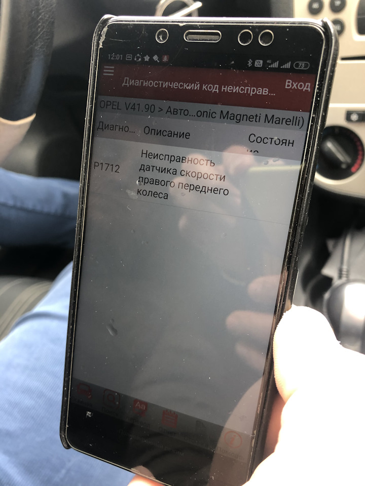 Диагностика показала ошибку P1712 (Неисправность датчика скорости правого переднего колеса)
