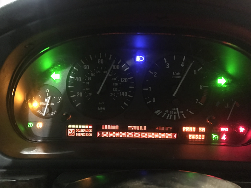 У меня стоит. приборка от х5 2006 г.в., разумеется не кодированная. Соответственно вин и пробег не точный. Также не работает тахометр, и эконометр . Плюс ко всему, двигатель у меня стоит м50б20 с е34. В которой нет такого количества различных блоков. АБС работает.