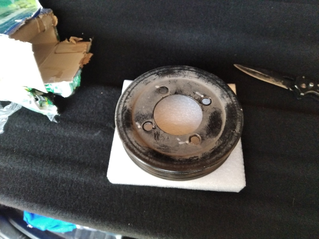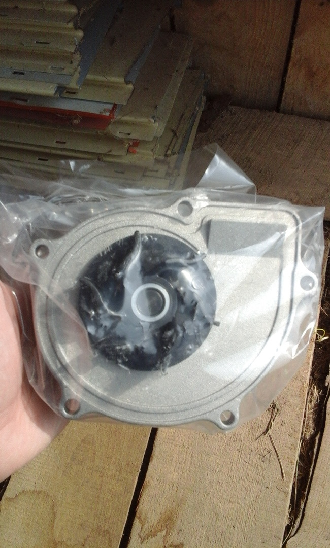 Благодаря общим усилиям и знаниям произвел замену помпы — с трехболтового шкива перешел на четырехболтовый (спасибо Сергею опять же), соответственно, с такой же помпой.