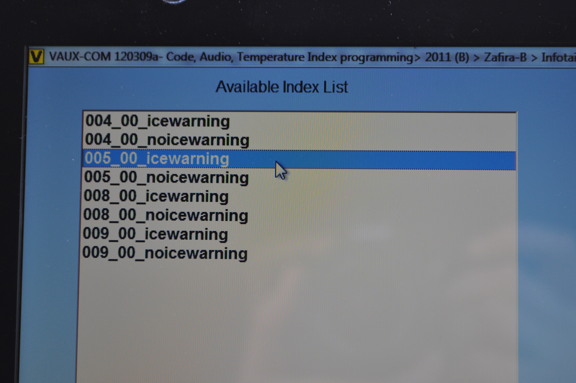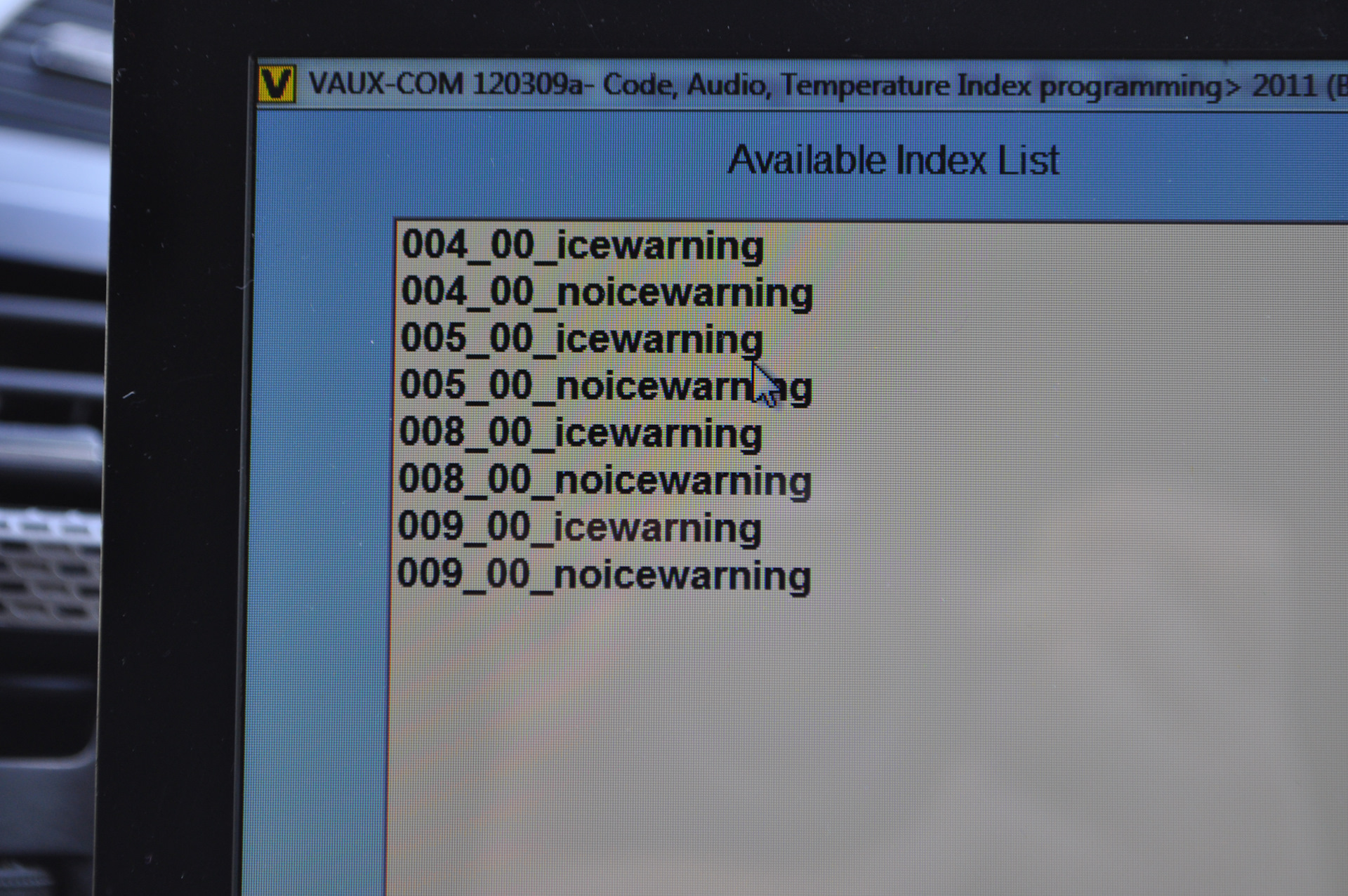 В открывшемся левом окне программы выбираем тот же самый Code index, с той лишь разницей, что версия сейчас будет другая и будет присутствовать надпись noicewarning, если вы желаете данное сообщение убрать с экрана БК / если сообщение о гололеде необходимо включить, то выбираем Code index c надписью icewarning.