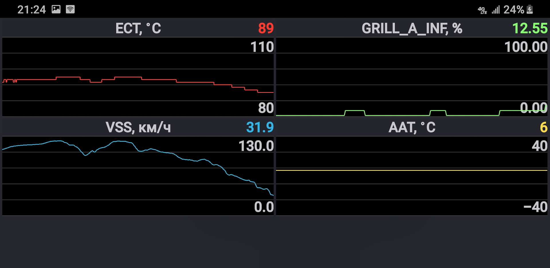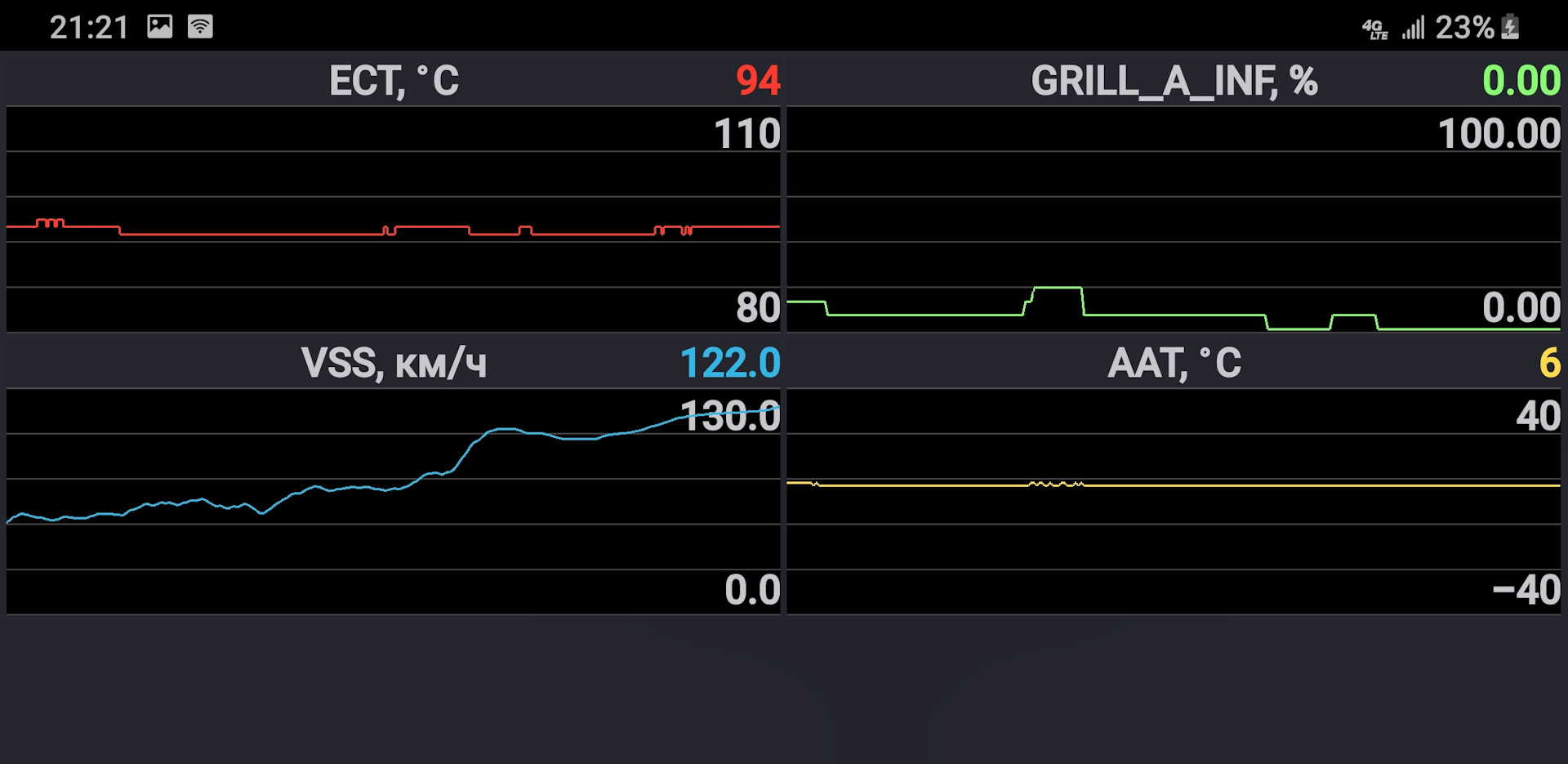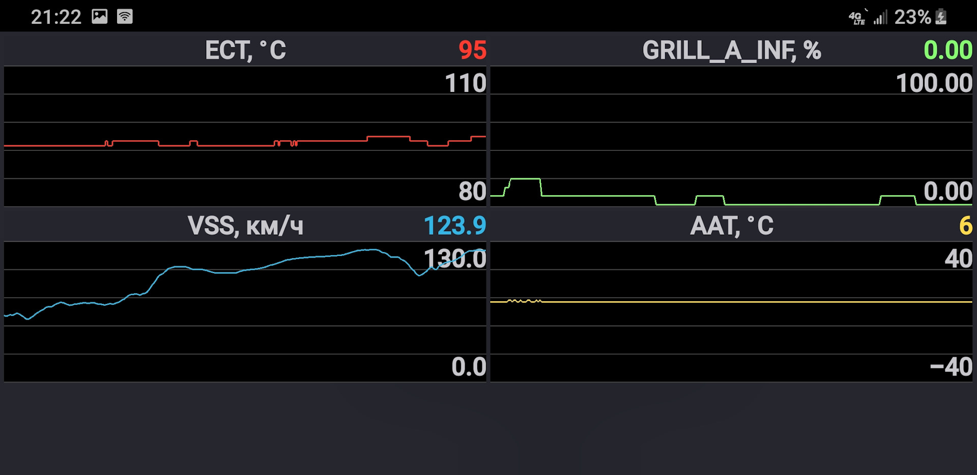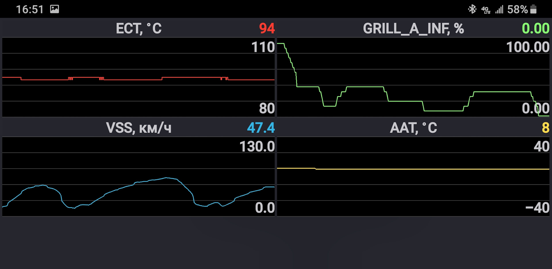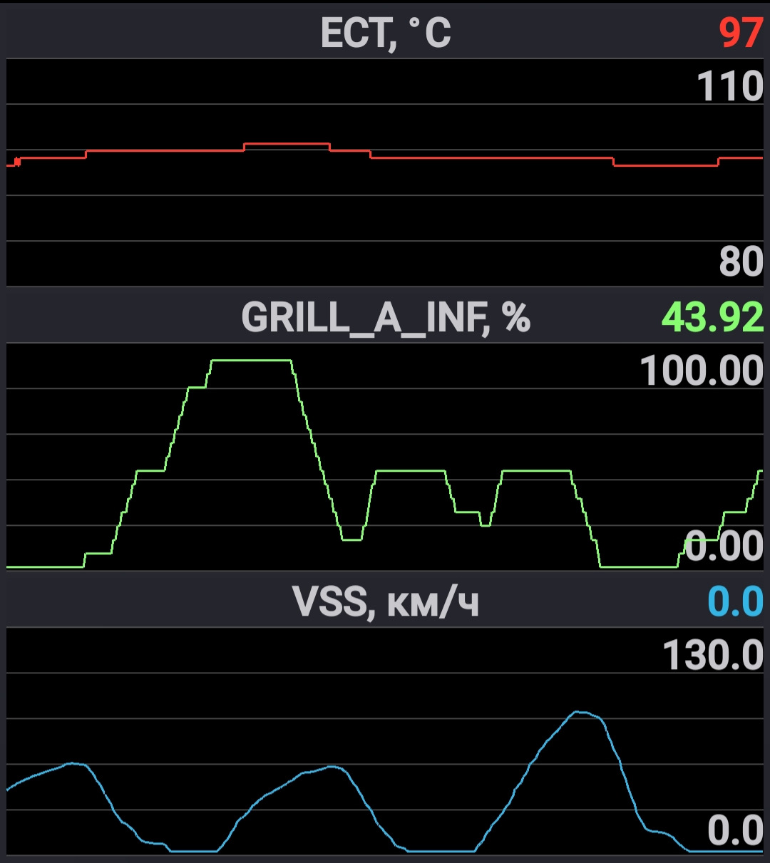 При дорожных испытаниях на трассе, активные жалюзи практически всегда закрыты. Ниже графики.