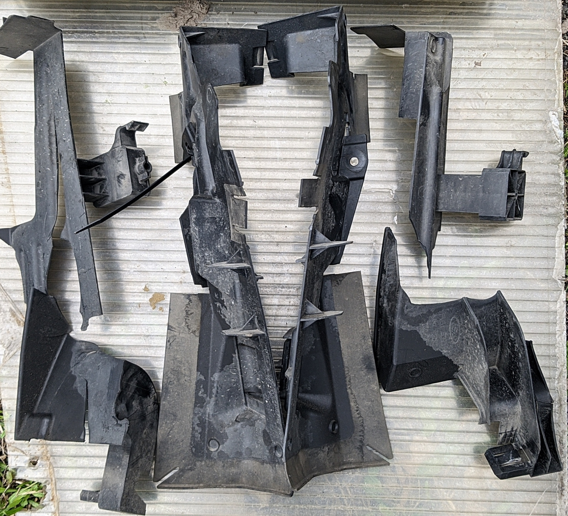 Новые эти детали стоят каких-то космических сумм, а на местных авторазборках каждый такой пластиковый элемент от 1500 до 2500 руб (в зависимости от состояния), более того, все четыре не купить в одном месте. В общем, жеванный крот, не хотелось за эти (совсем не новые) четыре куска пластика отваливать 6к руб, да еще и мотаться за ними по всему Питеру миру.