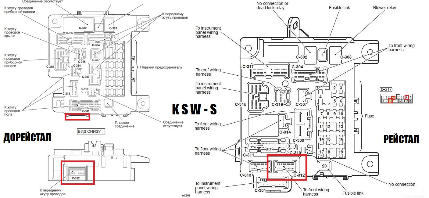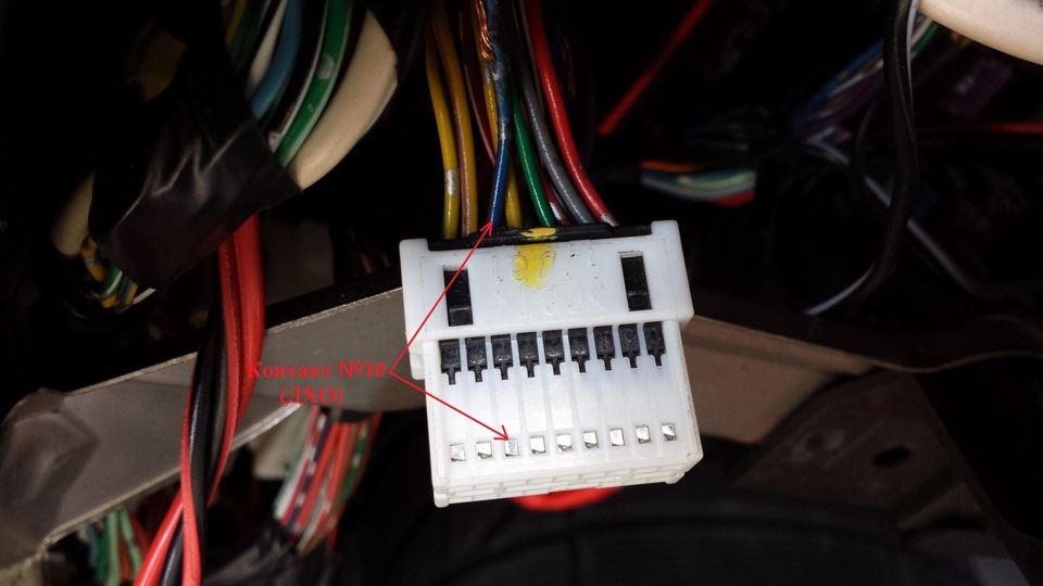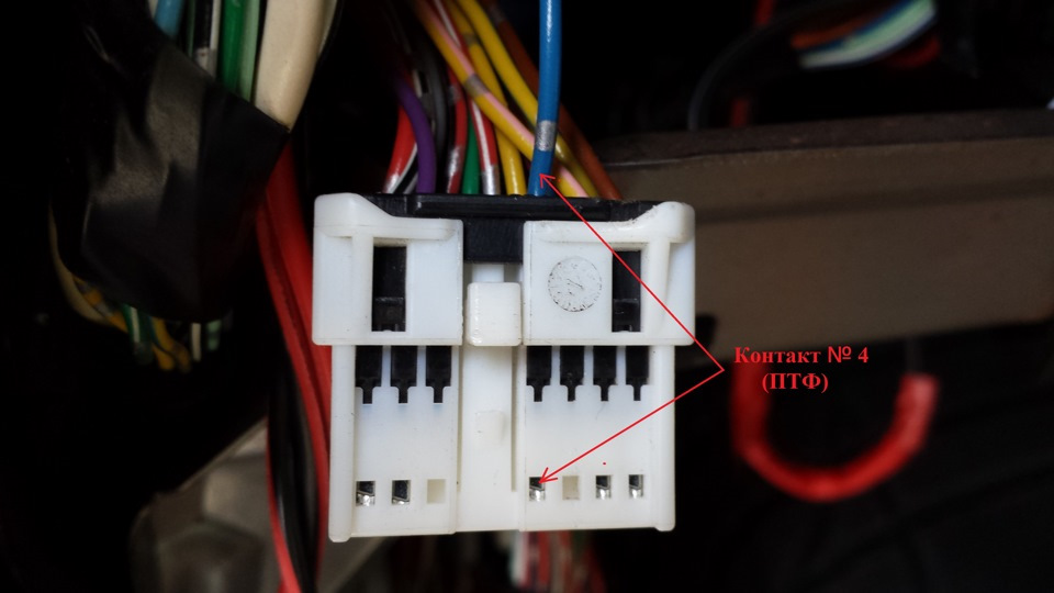 Затем нужно в фишке С-312 соединить пин 4 ПТФ с пустым пином 10 DRL перемычкой. Я это сделал путем врезания в синий кабель 4 пина.