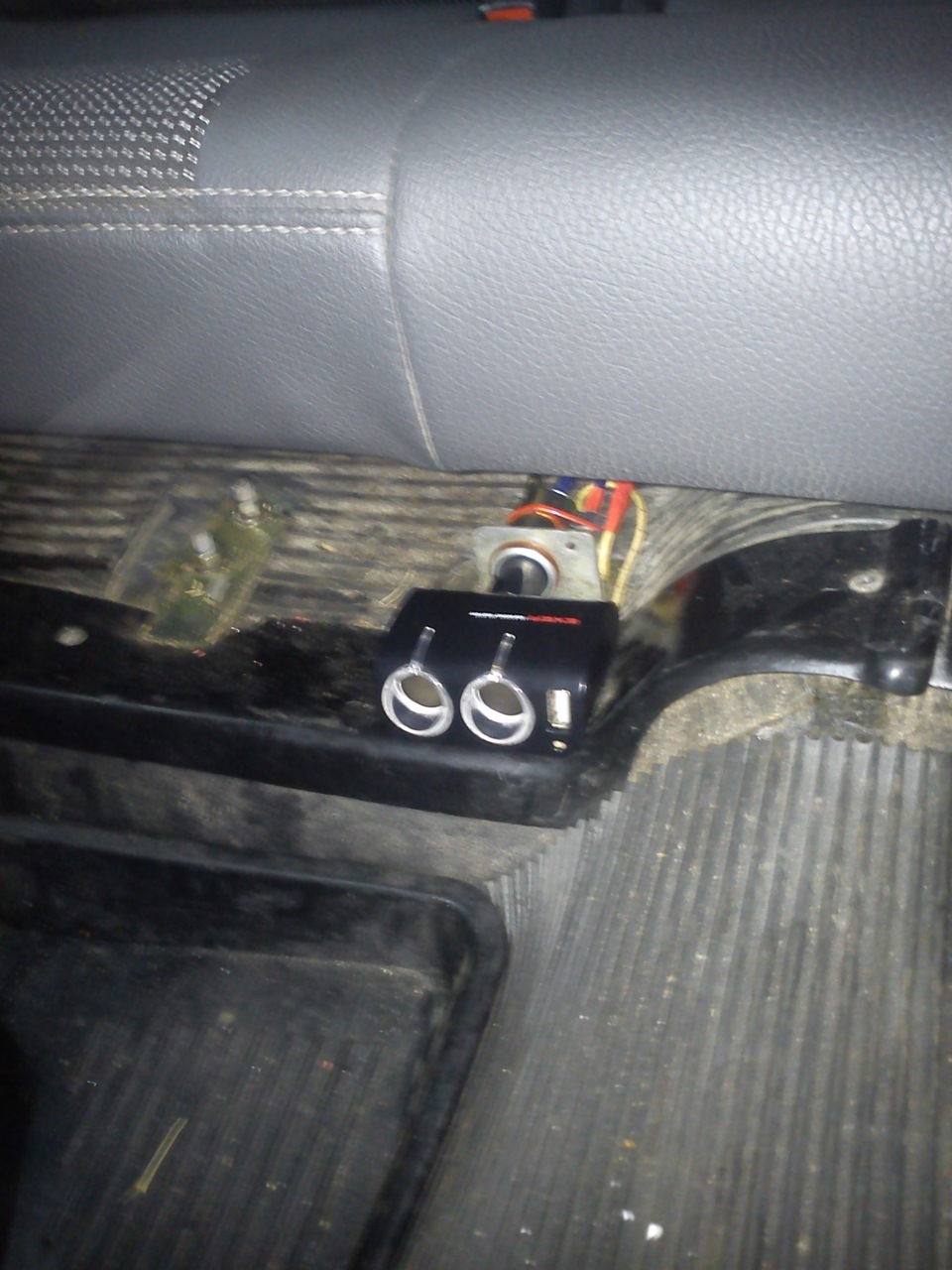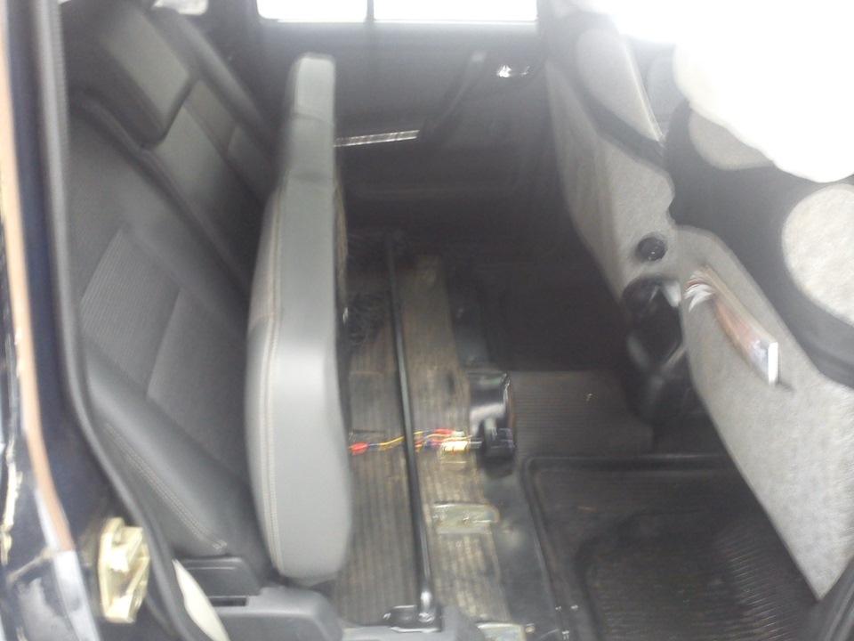 Заняться установкой сразу после покупки у меня не получилось из-за моих постоянных разъездов по делам рабочим и не только… Но сразу после новогодних праздников с бодрым настроением ломанулся в "Мастерскую у iNDi-Go". Все работы проводил мой старый друг romy4auto. К сожалению фотографий в процессе работы нет, поскольку было не до этого, уж больно увлекательно шел процесс инсталлирования ино-сидений))). Если коротко об установки, то прикрутили каркас сидений к родным шпилькам (остались от старых сидений), предварительно приварив уголки-кронштейны. Сам каркас сидений пришлось немного обрезать внизу (было высоковато), опустив и предав тем самым более правильный угол наклона спинки. В заключении пришлось делать выштамповку на задних арках для максимального смещения каркаса назад, кстати получилось практически как заводская)))) и подрезать пластиковые накладки на арках. Единственное, осталось подкрасить выштамповку на арках и немного укоротить подушку третьего ряда сидений, но это уже ближе к лету. Управились за один день и уже вечером (часиков в 10) выдвинулся к дому с королевскими задними сидениями))). На следующий день для еще большего удобства задних пассажиров была сделана розетка прикуривателя под подушкой с вставленном в нее неким девайсом, имеющим на выходе 2 розетки и USB вход.