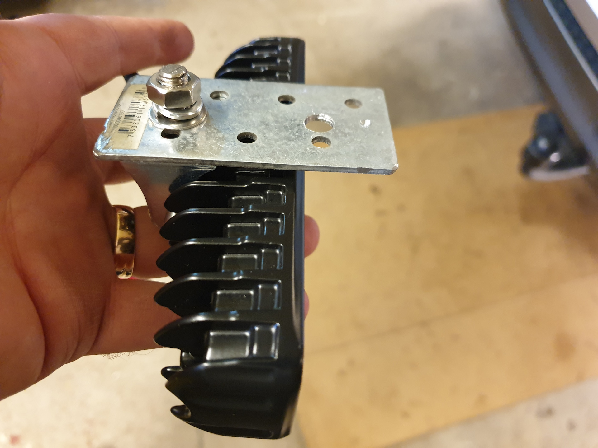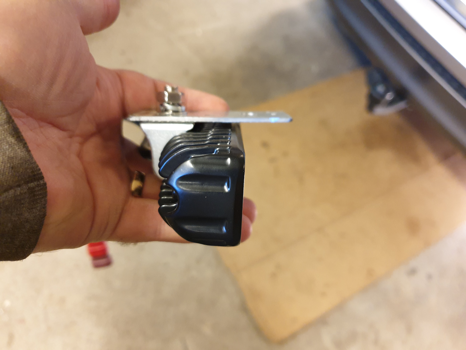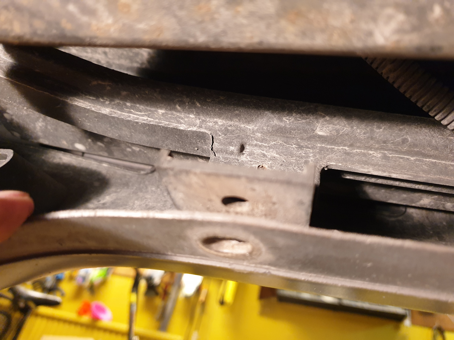 Далее под бампером открутил пистон который крепит нижнюю бровку бампера, вставил пластину между бампером и площадкой к которому он крепится и зажал болтом.