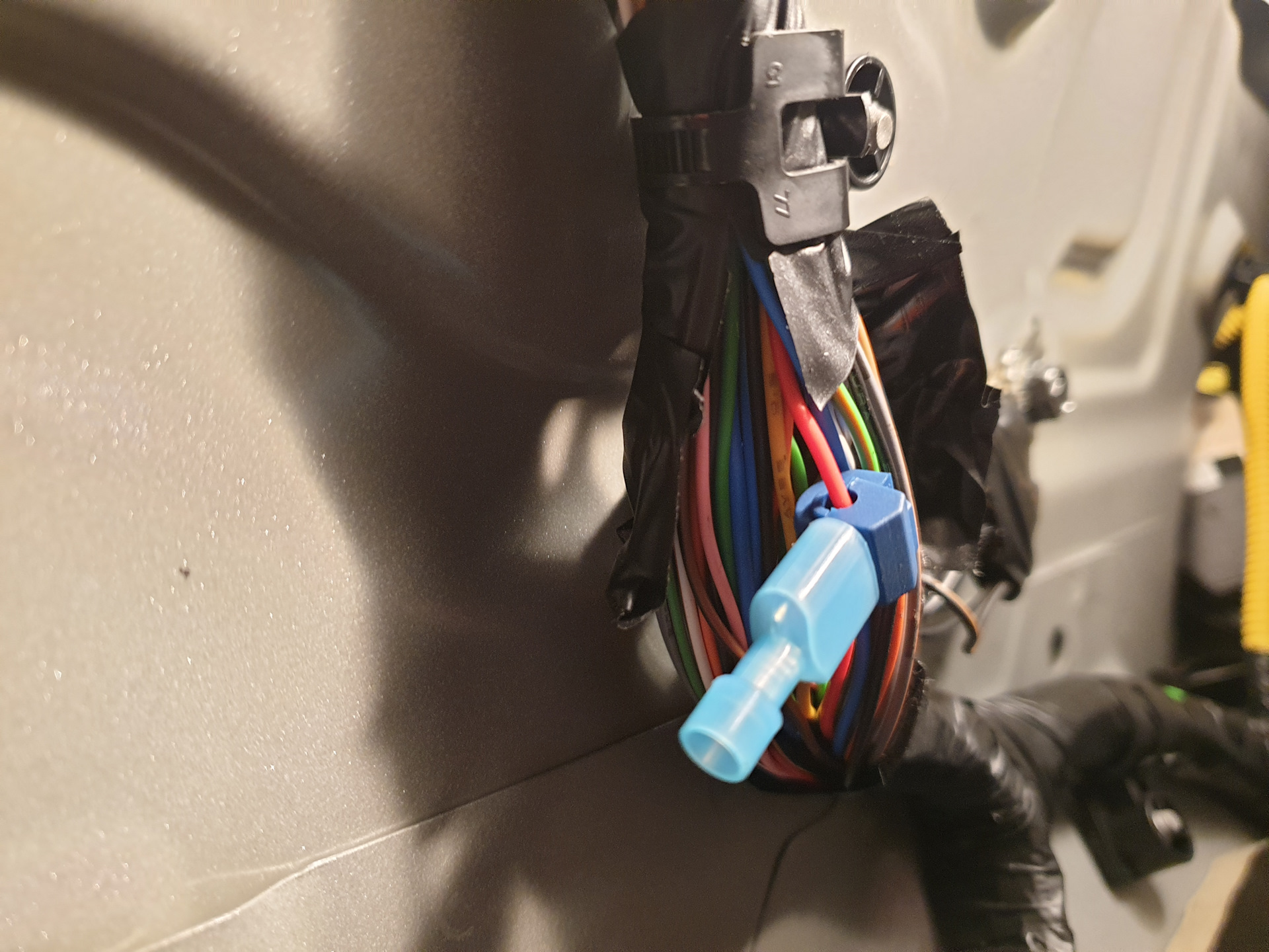 Кабель от ДХО протянул через резиновую заглушку, все подключил и проверил на отсутствие "вспышки" при перескоке селектора через R. Далее собрал все на место.