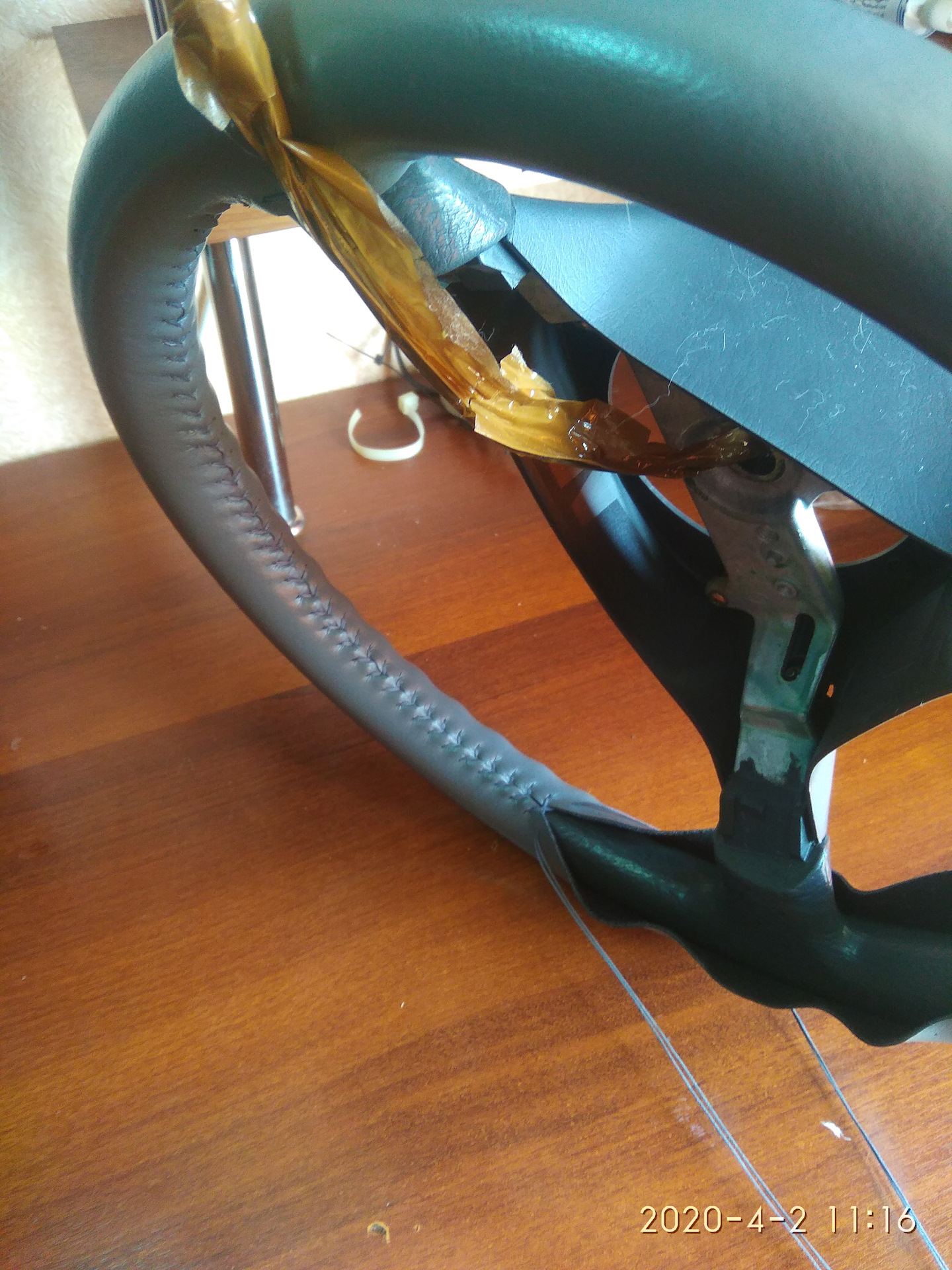 Всем Привет. По ткани с иголкой и ниткой дружу с детства. Вот мой первый крой с кожей! Ну типо кожей. На ощупь очень приятна, да и руль стал по удобней. Шов ёлочка. Мне нравится! Всем Добра!