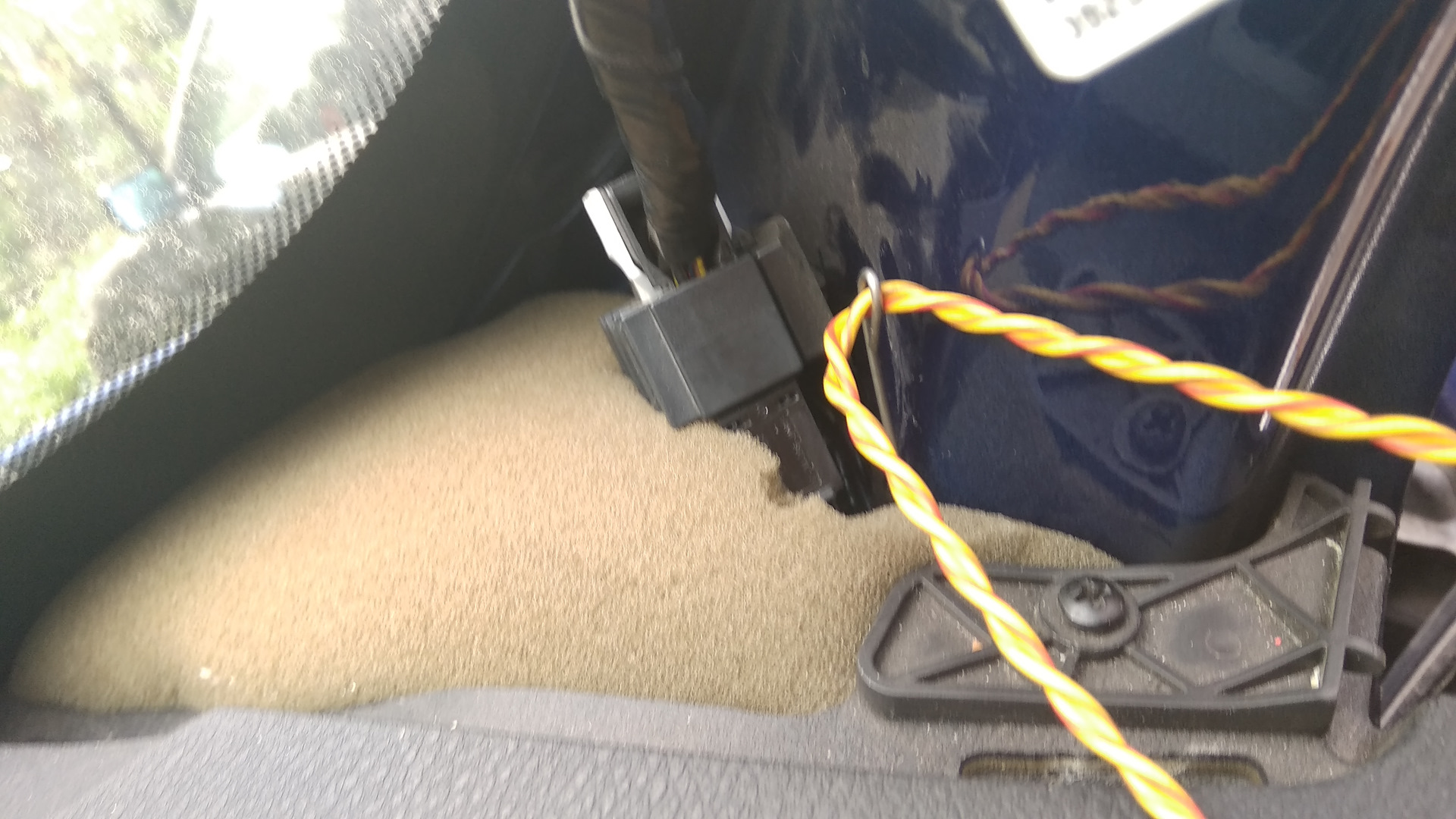 Б) Укорачиваем провод (20-30)см, этого можно и не делать и блок занести в бардачок (я блок оставил на потолке и туда довёл 12 В, чтобы при необходимости можно было любое другое устройство подключить!)