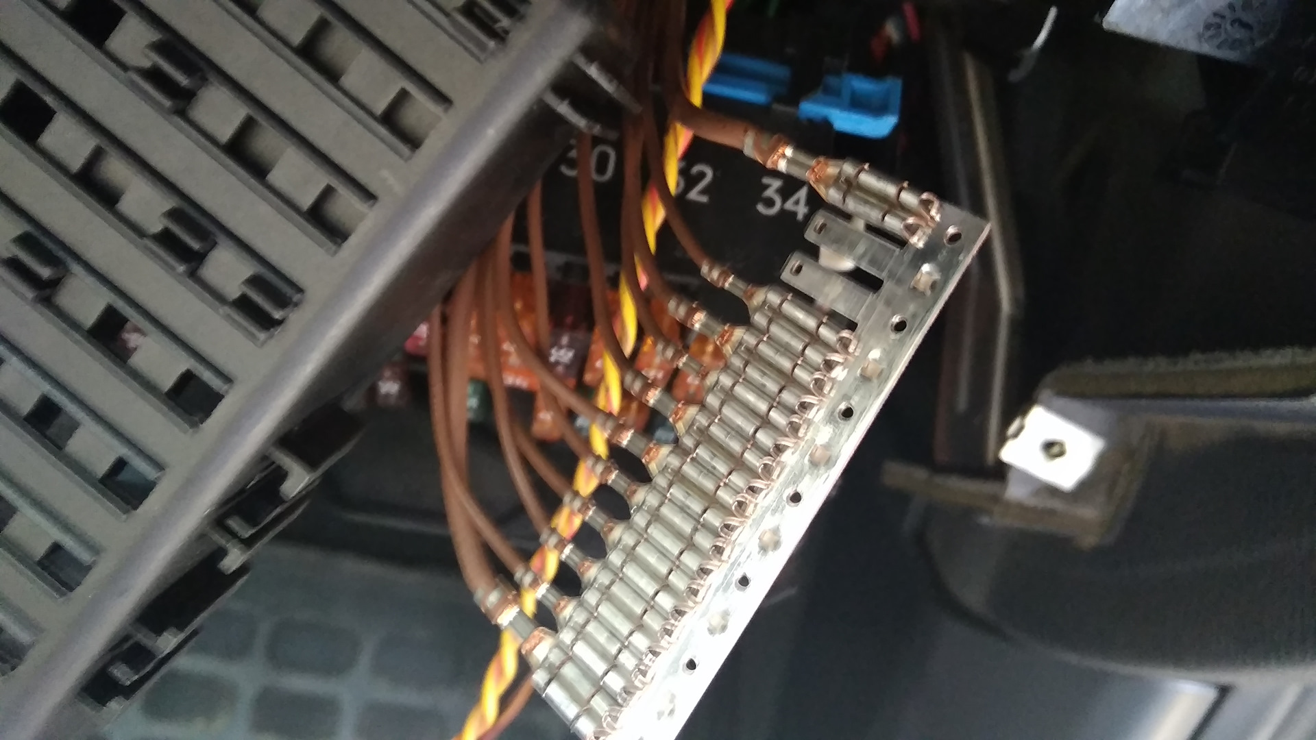 П) Контакт я брал от блока предохранителей е36, они абсолютно одинаковые лет 20 как точно, подойдёт от любой БМВ, выглядит как на фото. Вставляем его в верхнюю части и возвращаем белый фиксатор. Плюсовой провод у нас готов "+" (предохранитель не вставляем!)