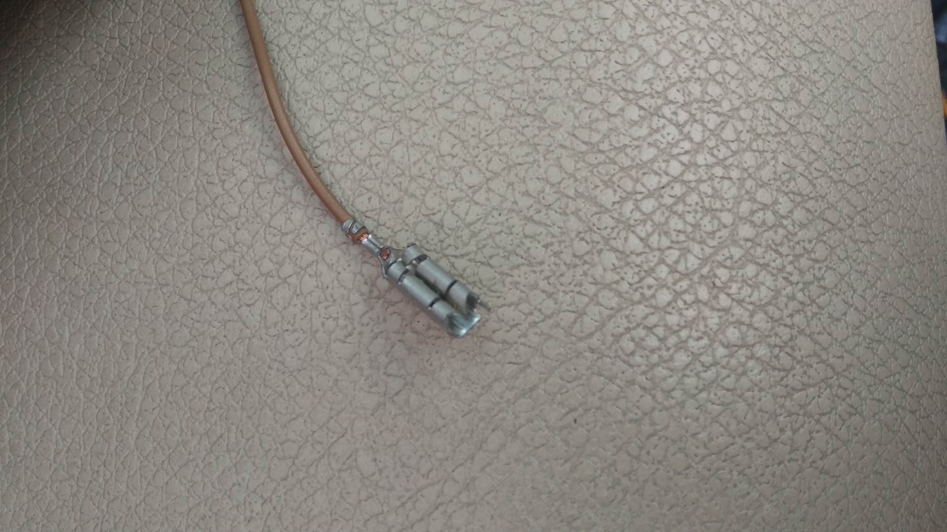 Г) К контактам входа припаиваем 2 провода (у меня это были штатные провода, подбирал по цветам — у БМВ коричневый или с коричневый основной это минус "-", а красный или с таким цветом — это плюс "+")