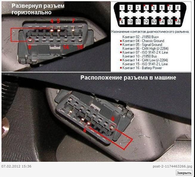 4. Соедините контакт 4 и 9 на диагностическом разъеме