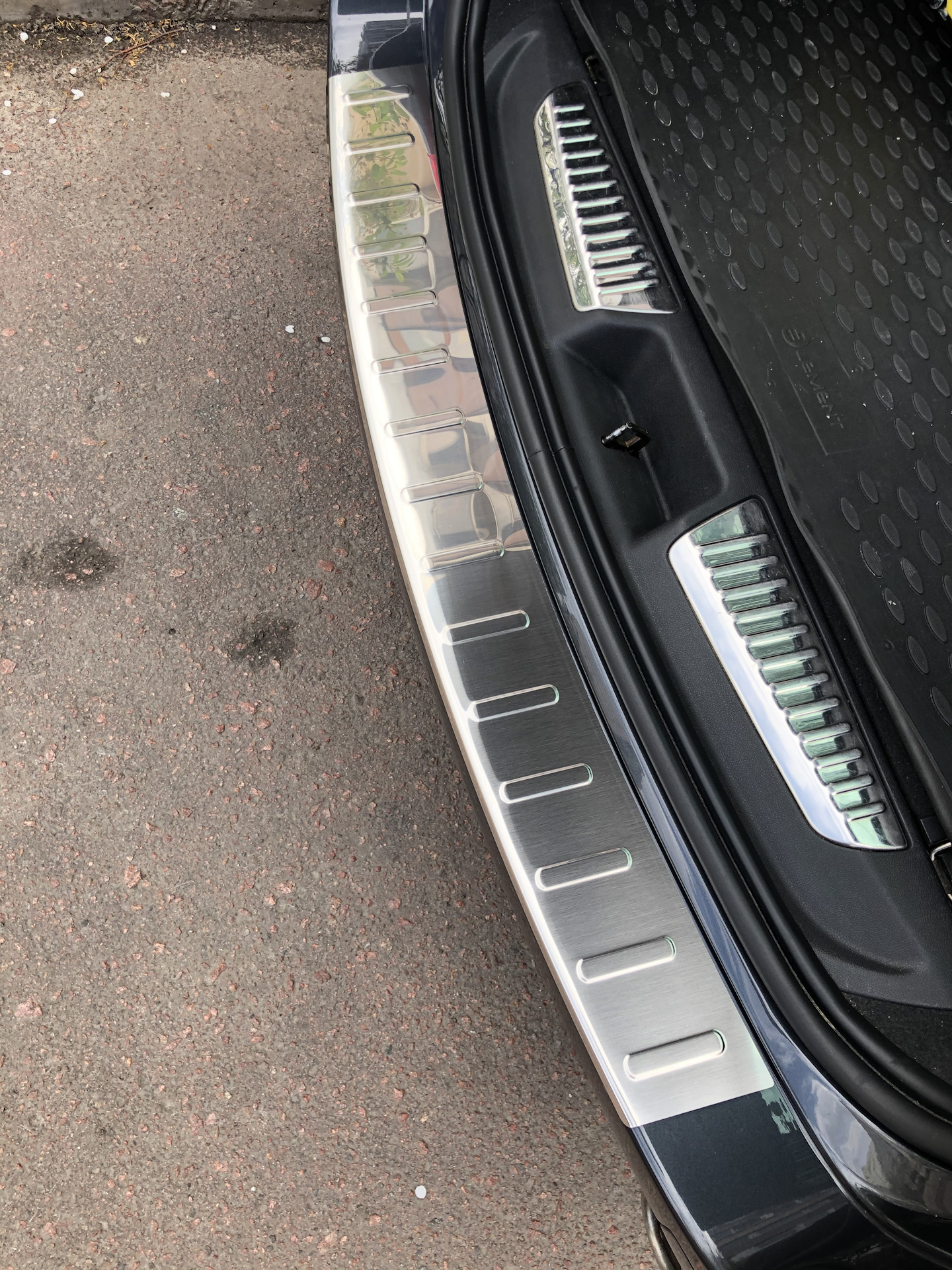 Так-как постоянно тягаю в багажнике всякое оборудование было принято решение установить накладку для защиты бампера. Накладки плоские (без загиба) не рассматривал ввиду отсутствия защиты кромки бампера. Отличный вариант нашёл на Allegro. По цене с доставкой вышел в 40$. Стал как родной без танцев с бубном и подрезаний. В комплекте также есть тюбик с полиролькой для металла, мелочь а приятно.